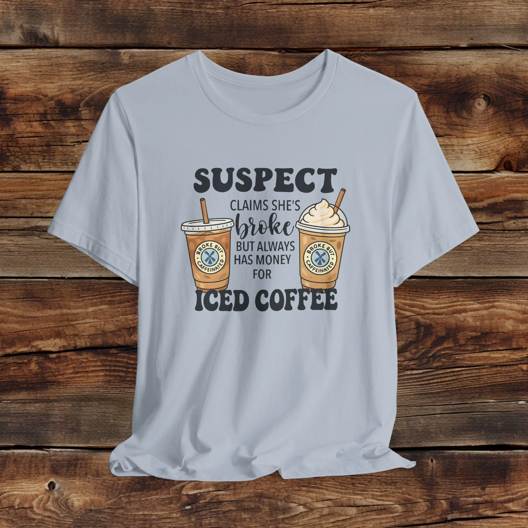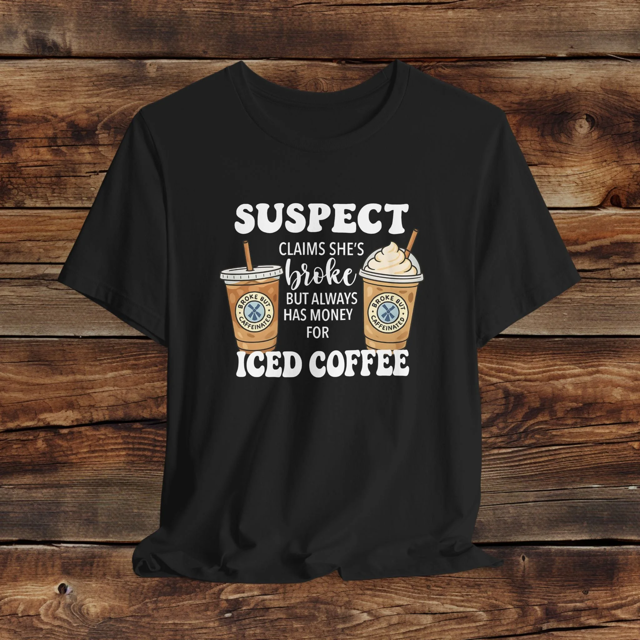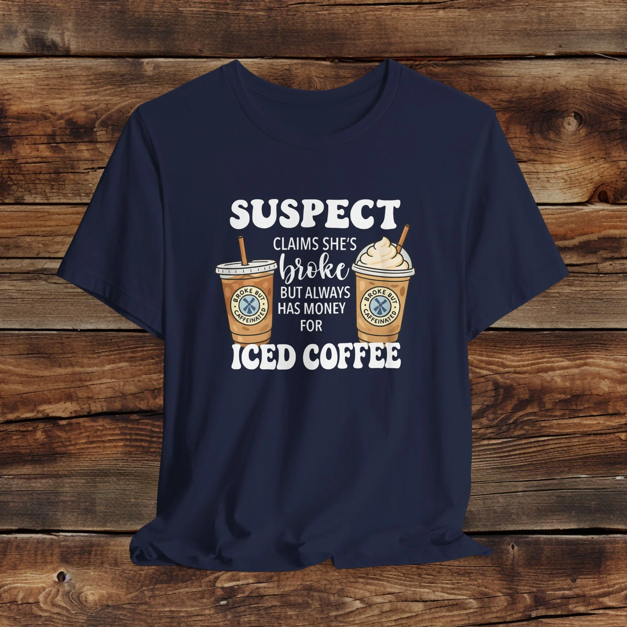 Broke But Caffeinated Iced Coffee Shirt – Funny Coffee Lover Tee