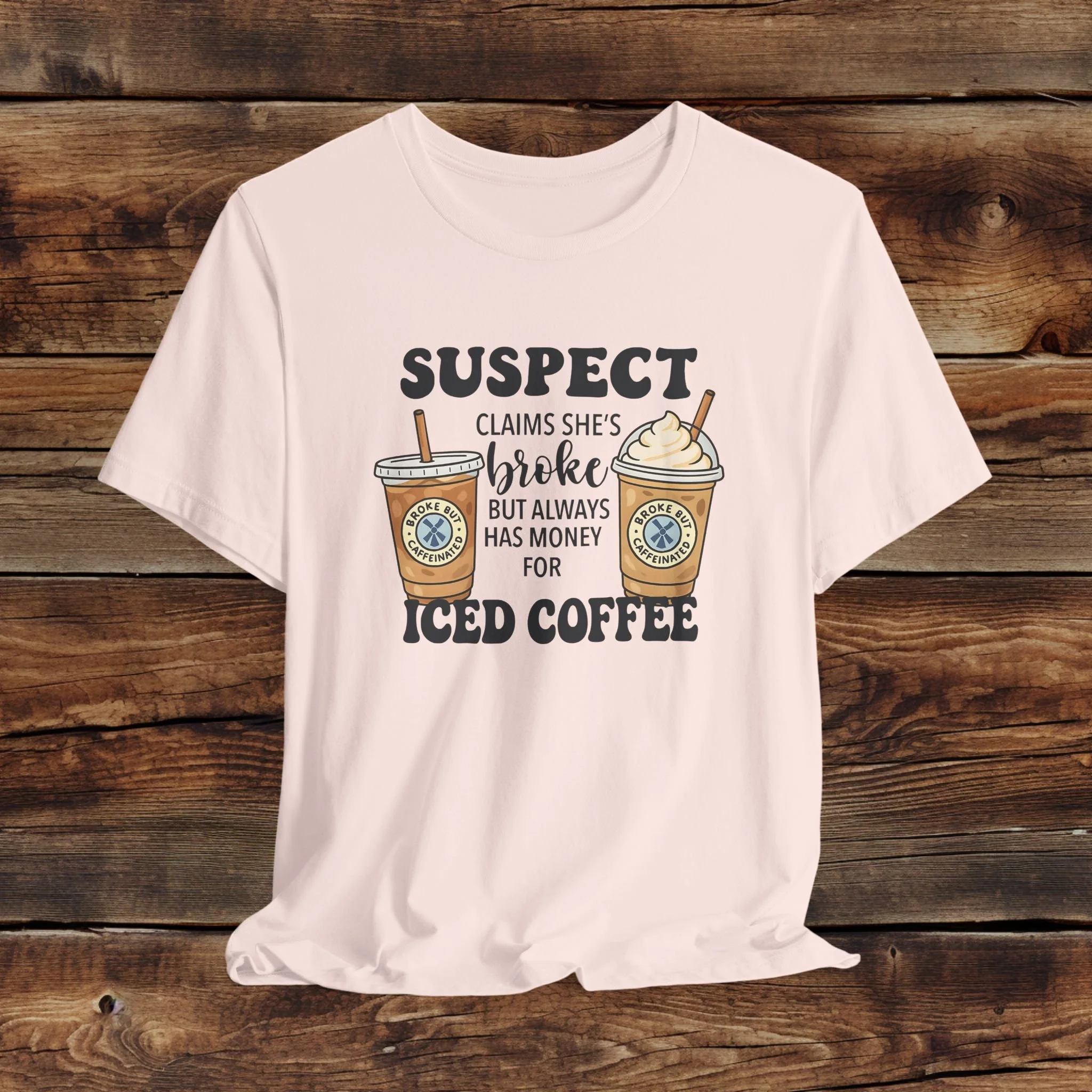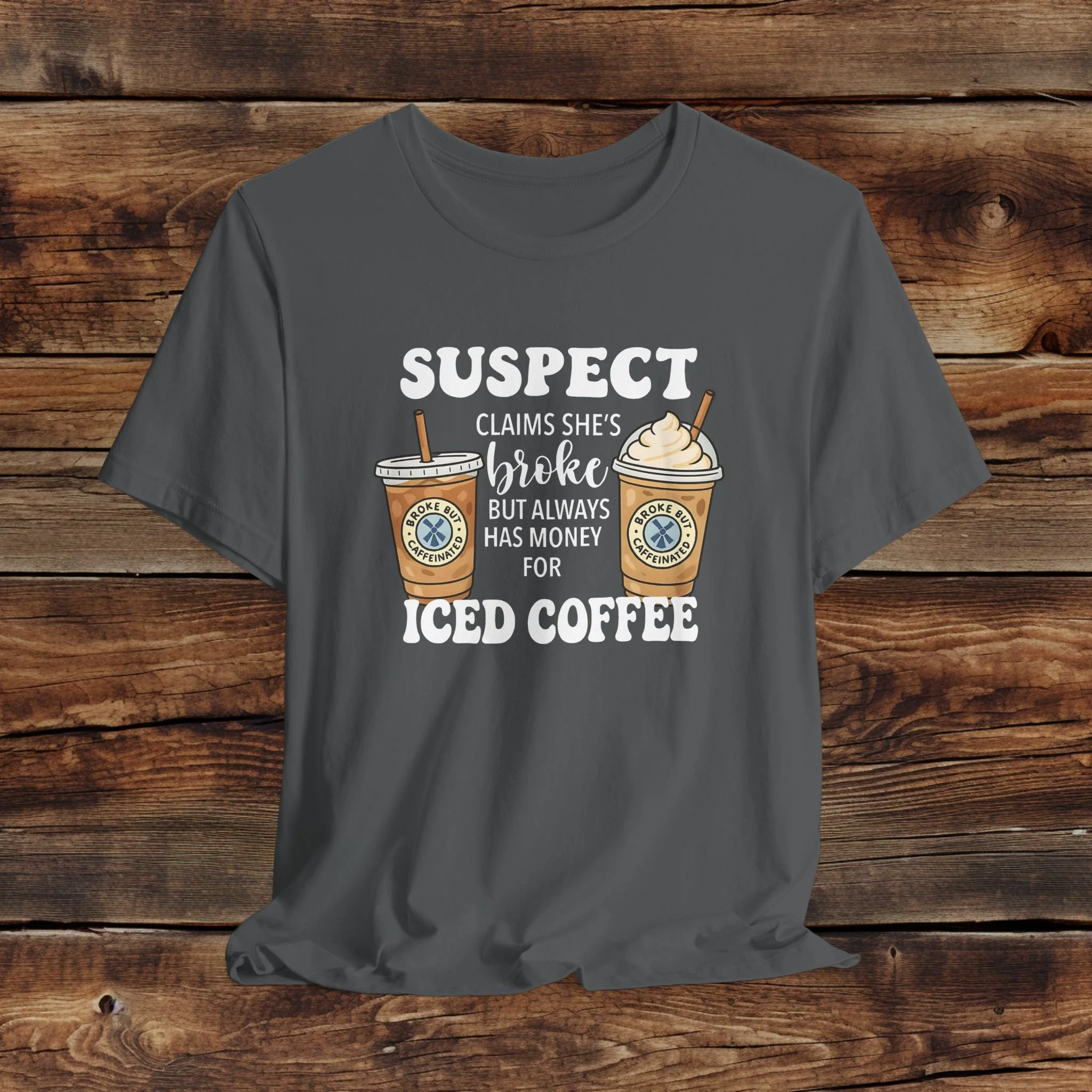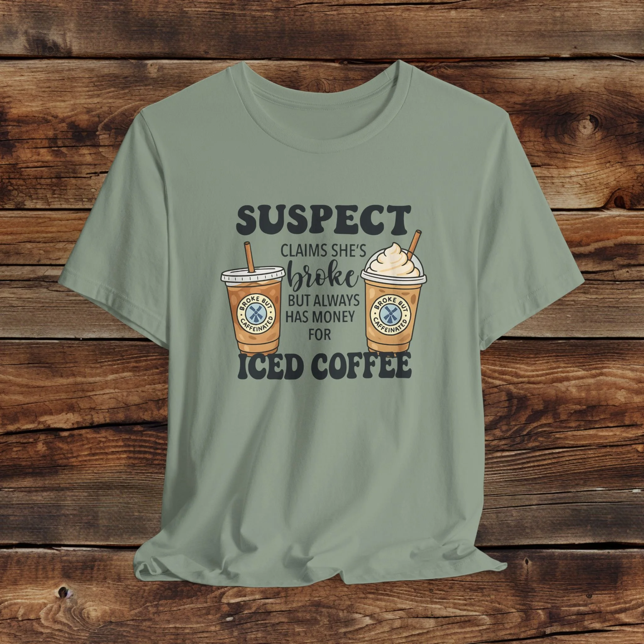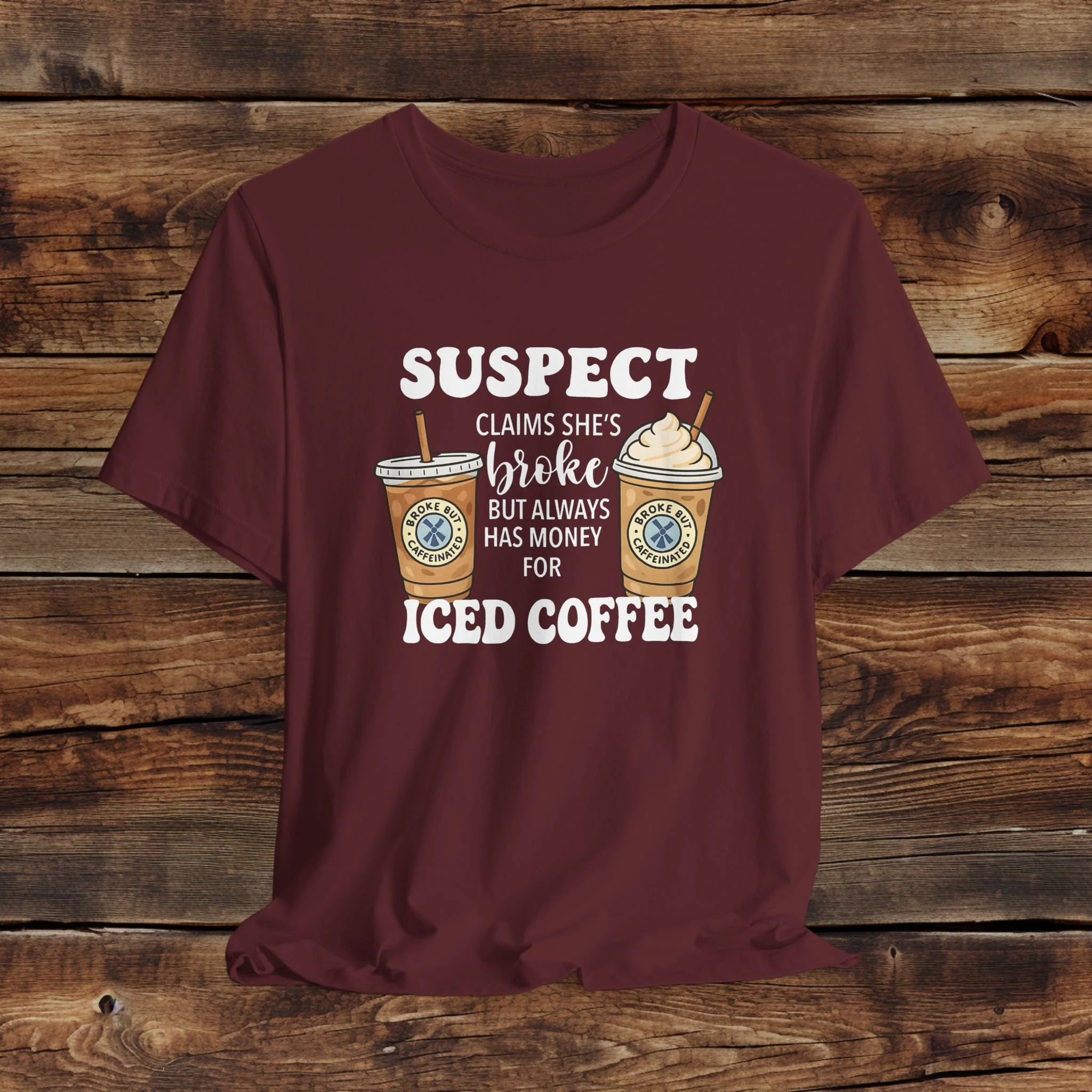Broke But Caffeinated Iced Coffee Shirt – Funny Coffee Lover Tee