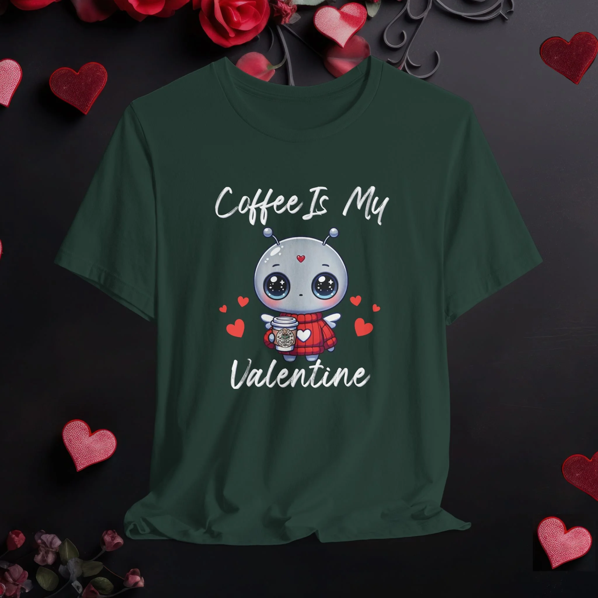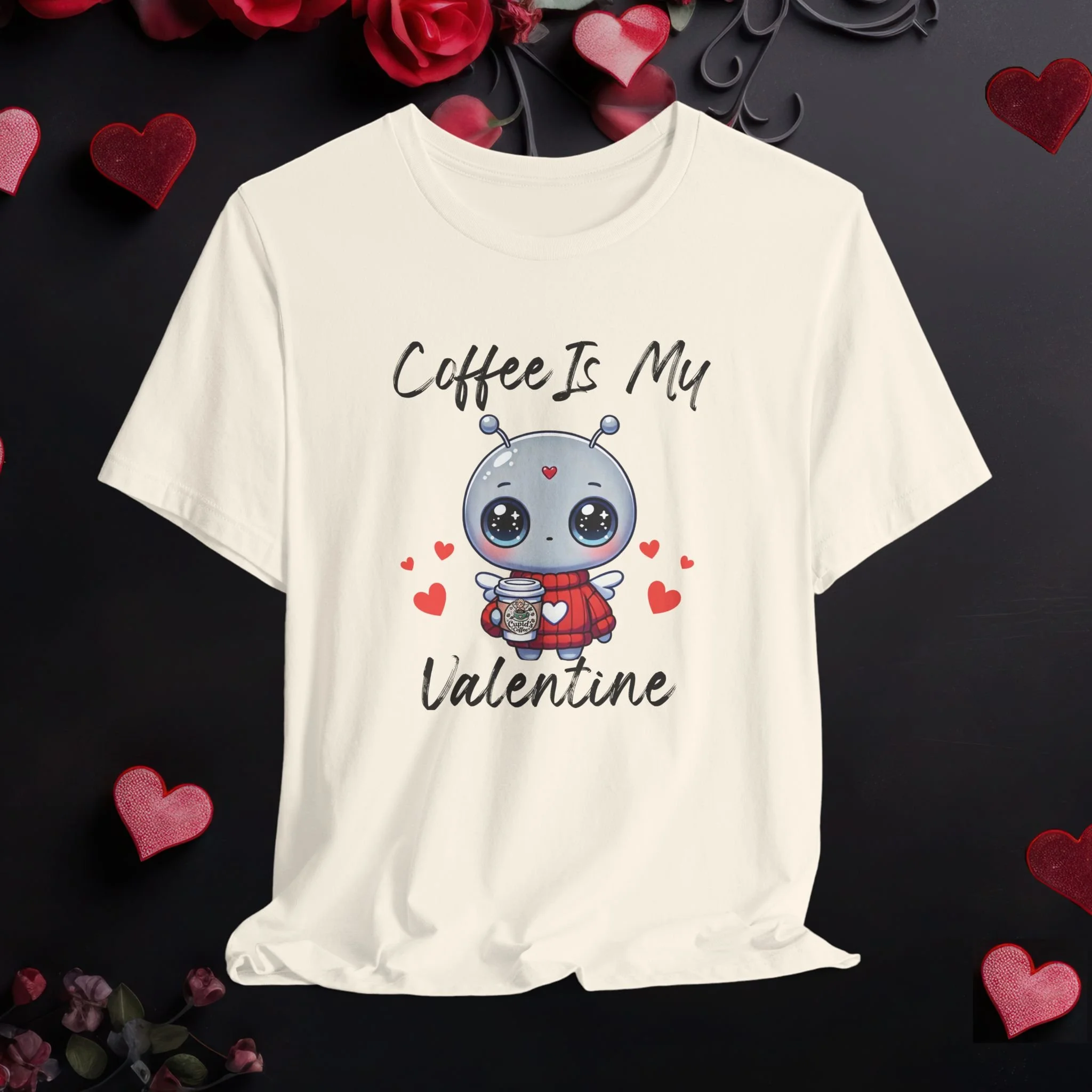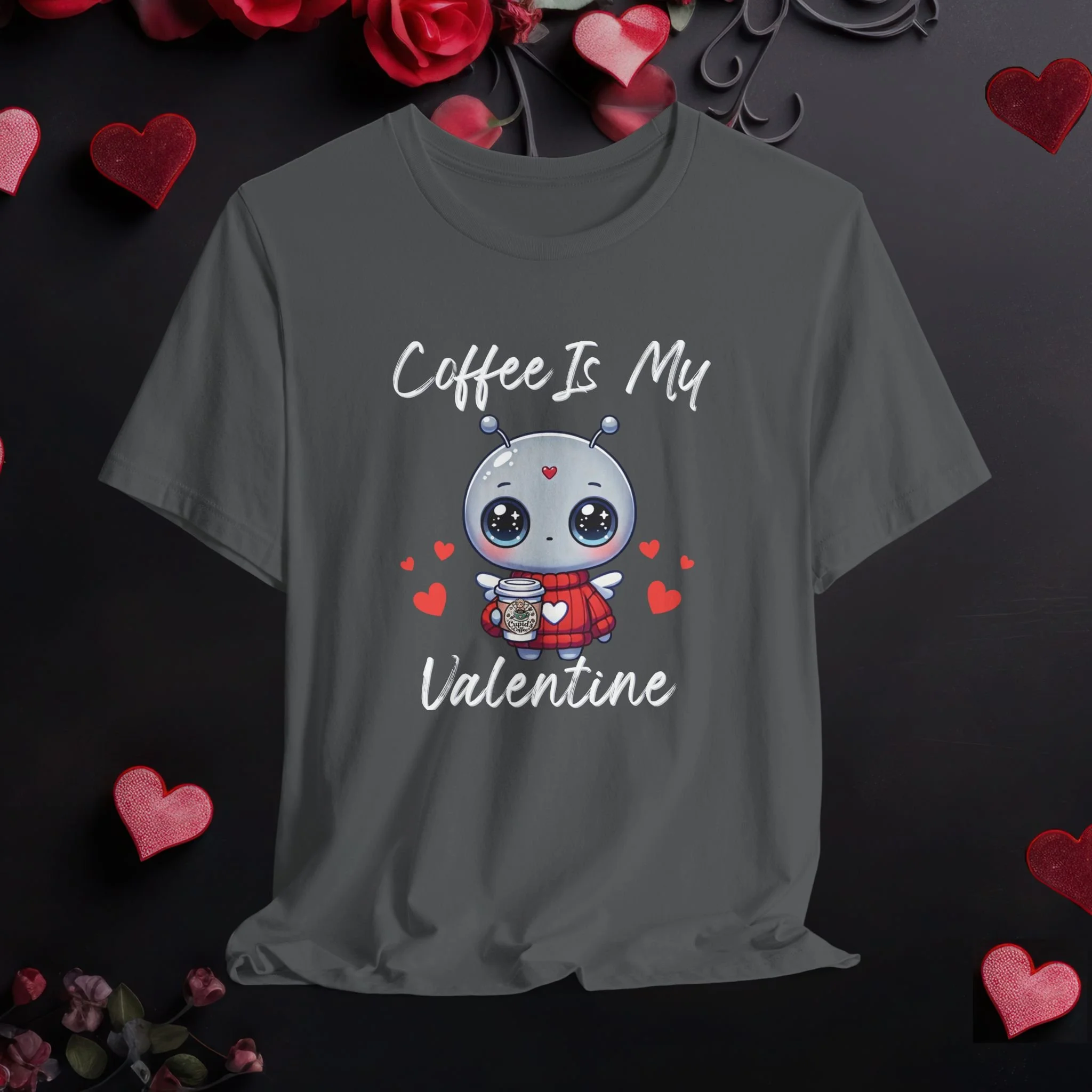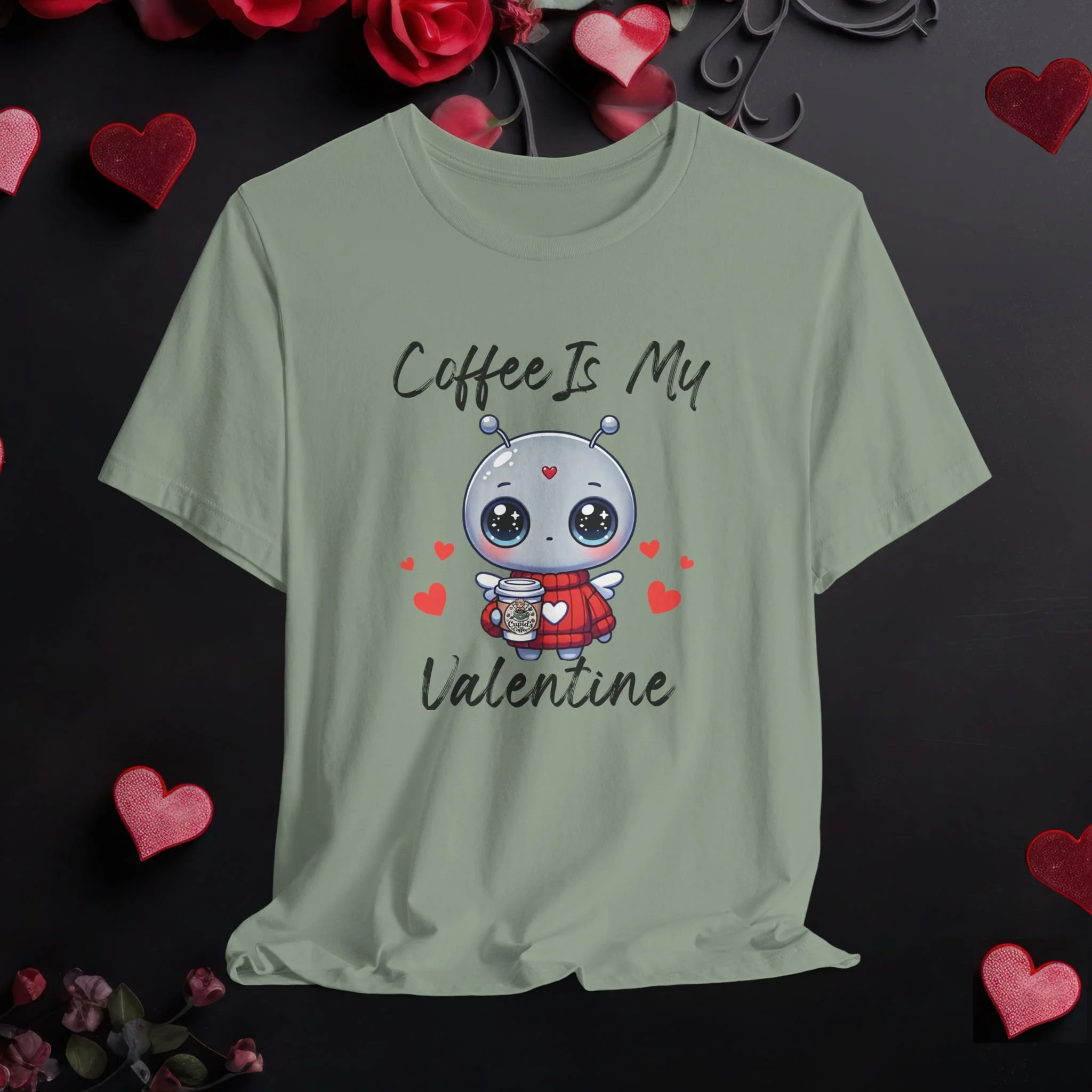 Coffee Is My Valentine shirt featuring a cute coffee lover graphic. A fun Valentine’s Day tee perfect for coffee fans and casual wear.
