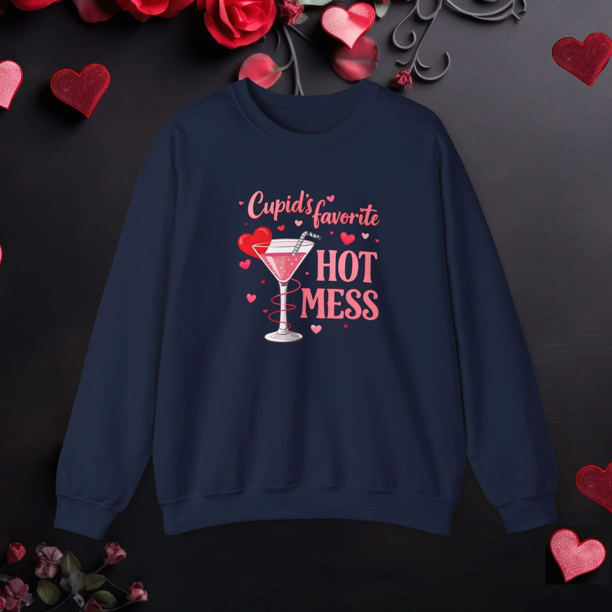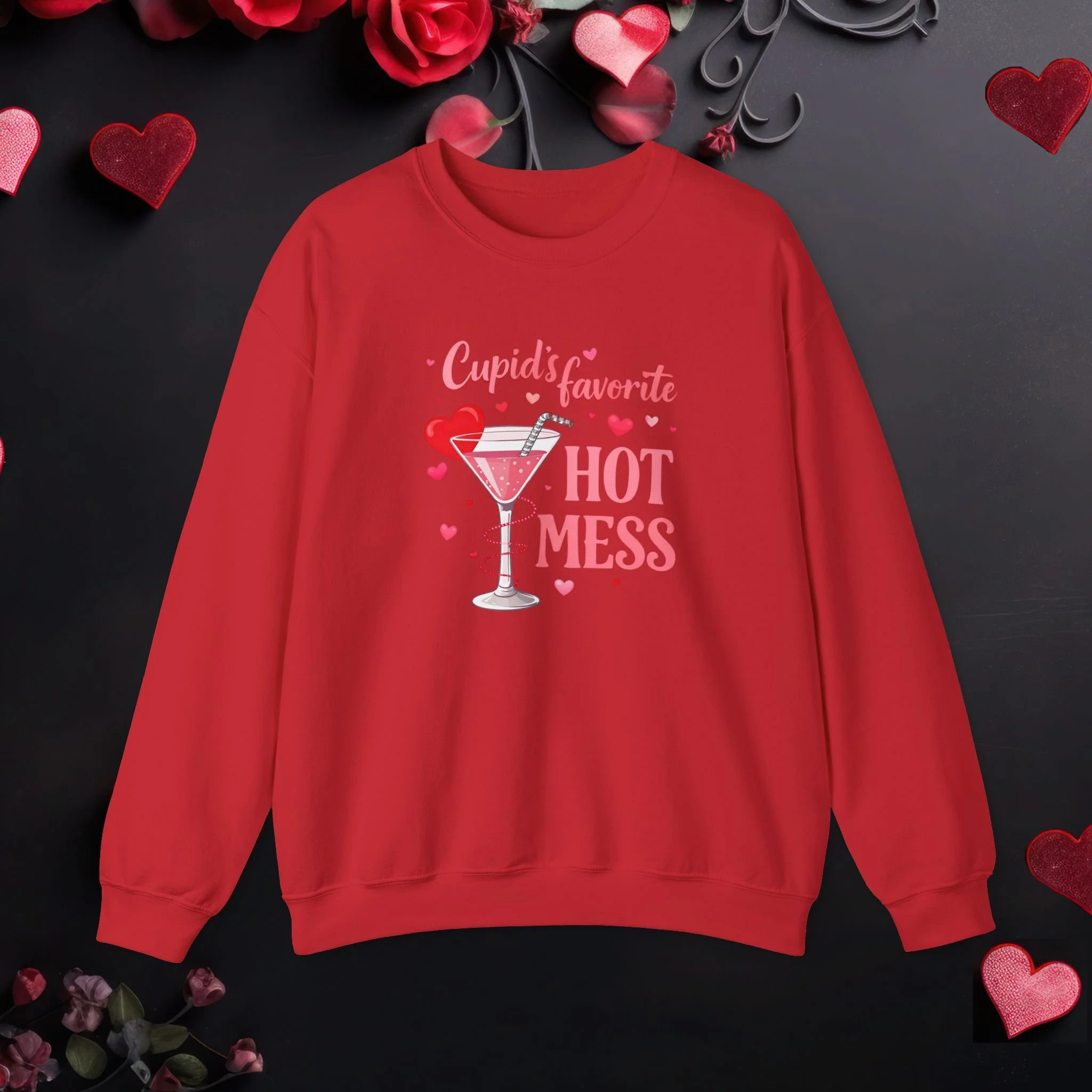 Cupid’s Favorite Hot Mess Valentine Sweatshirt – Funny Cocktail Graphic Sweatshirt
