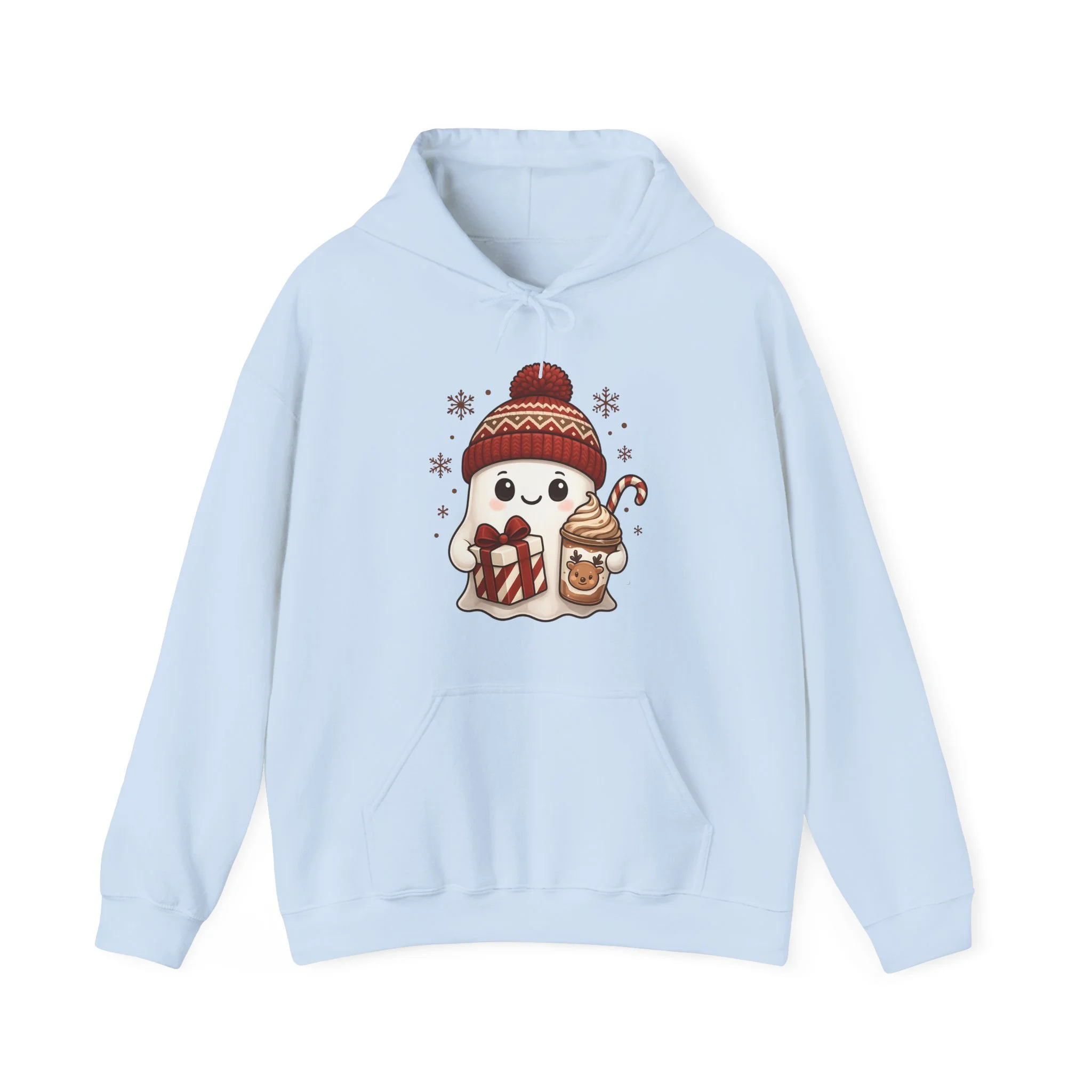 Cute Christmas Ghost Hoodie, Christmas Coffee Hoodie