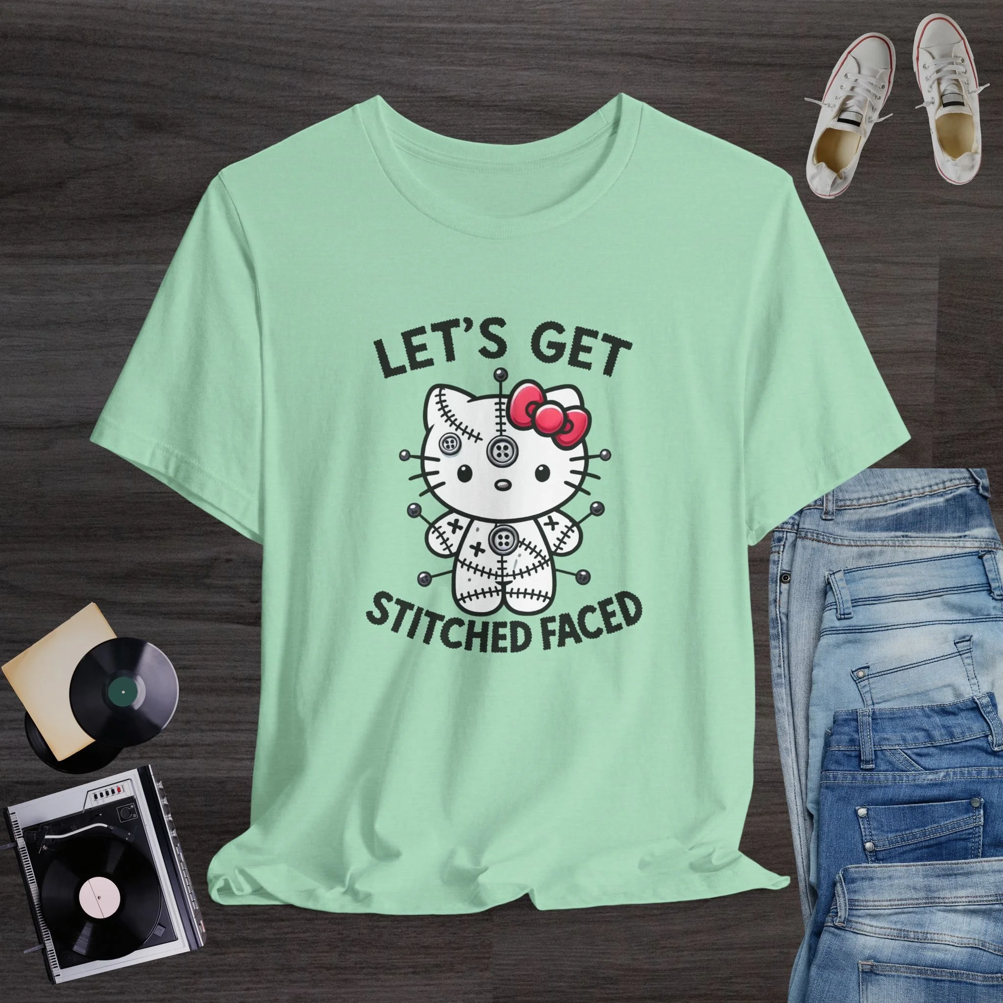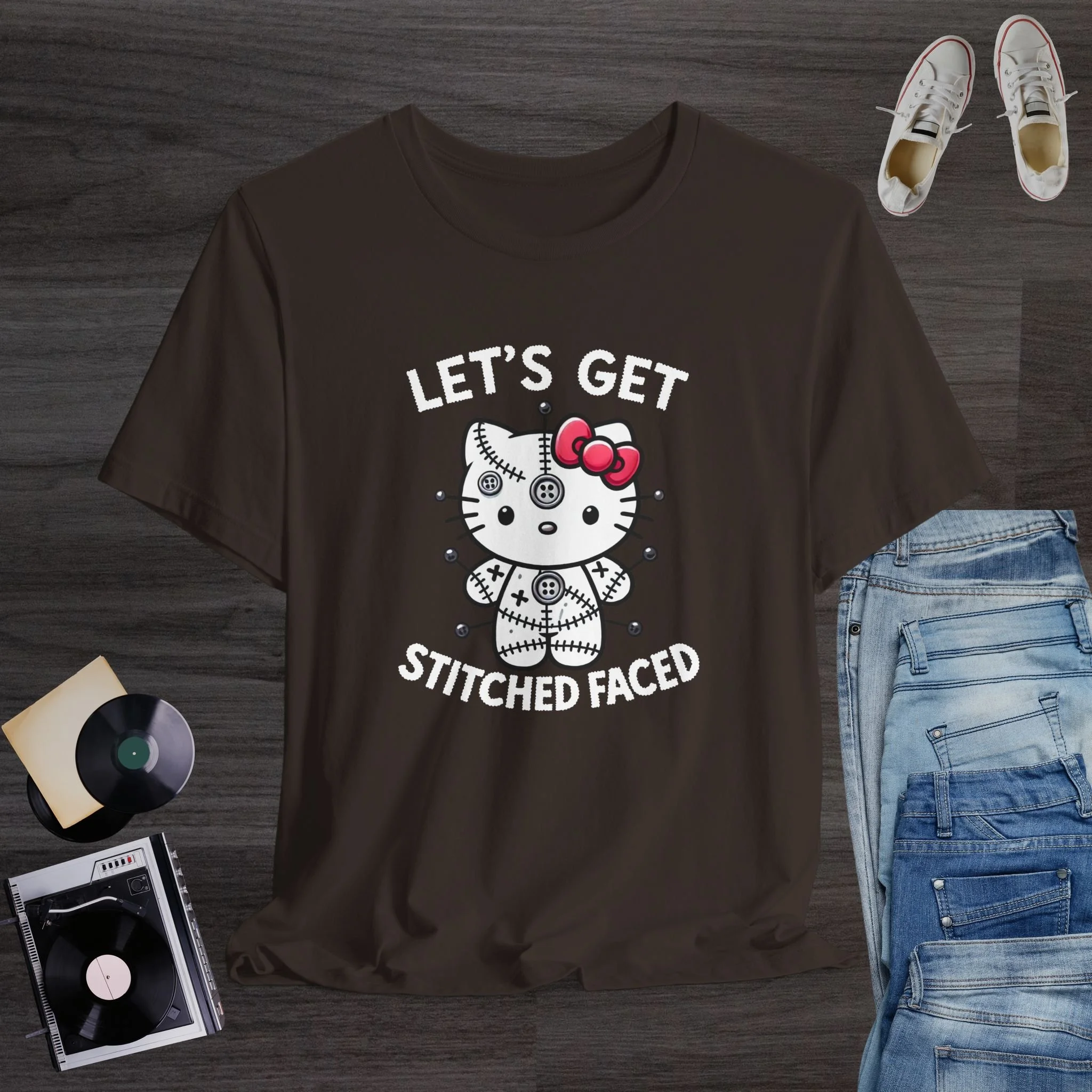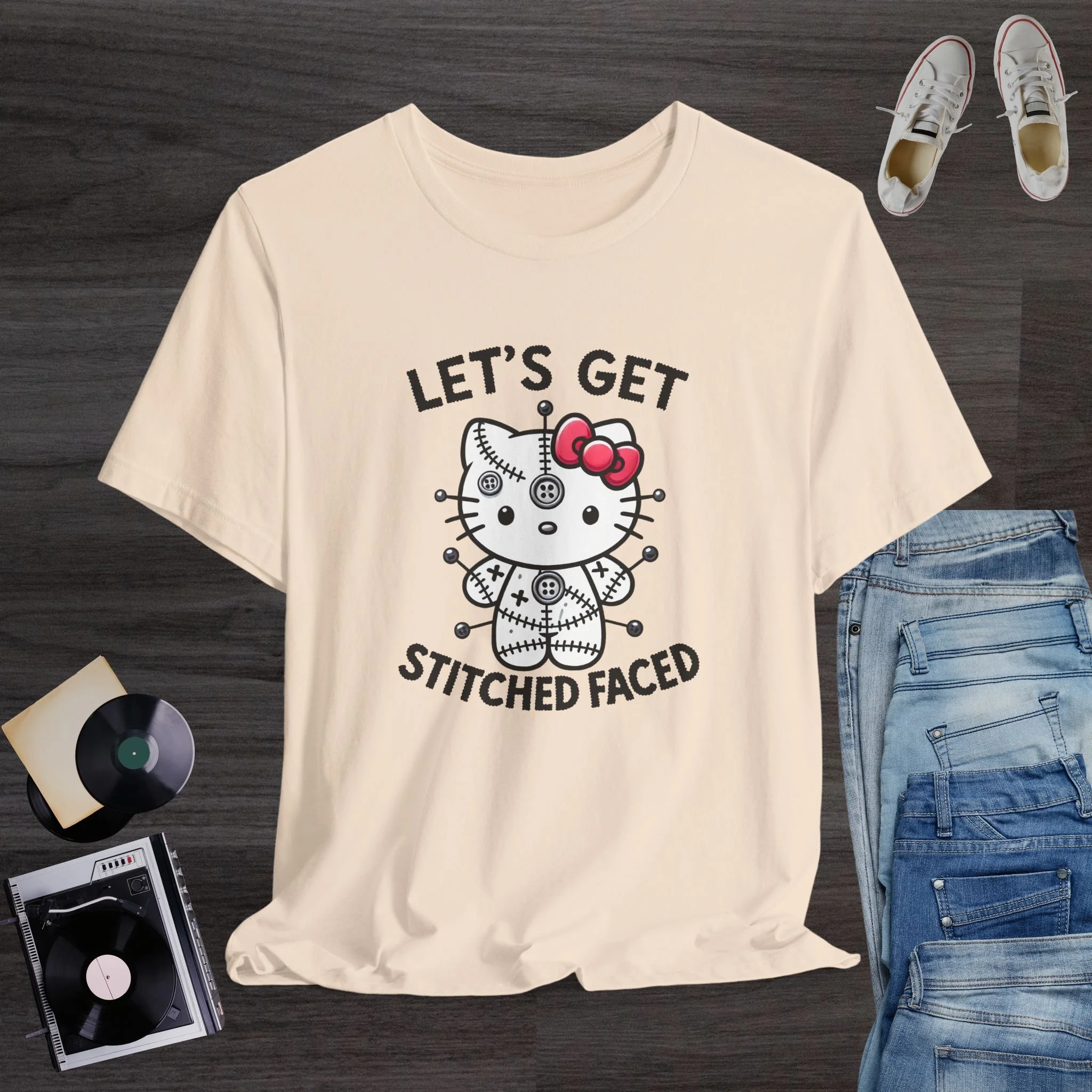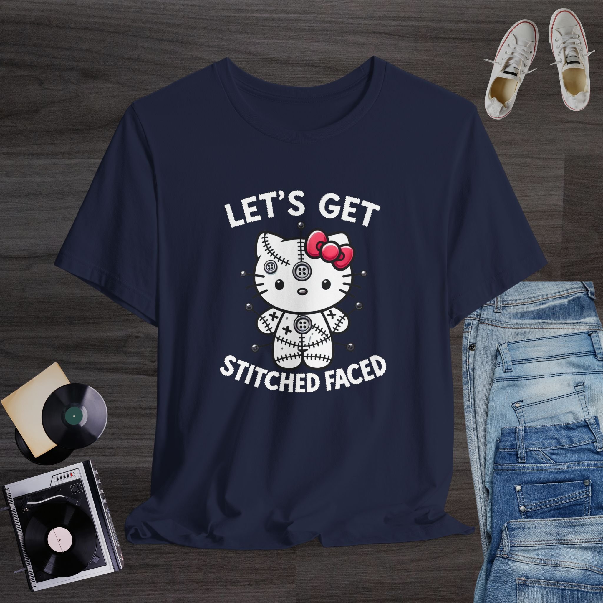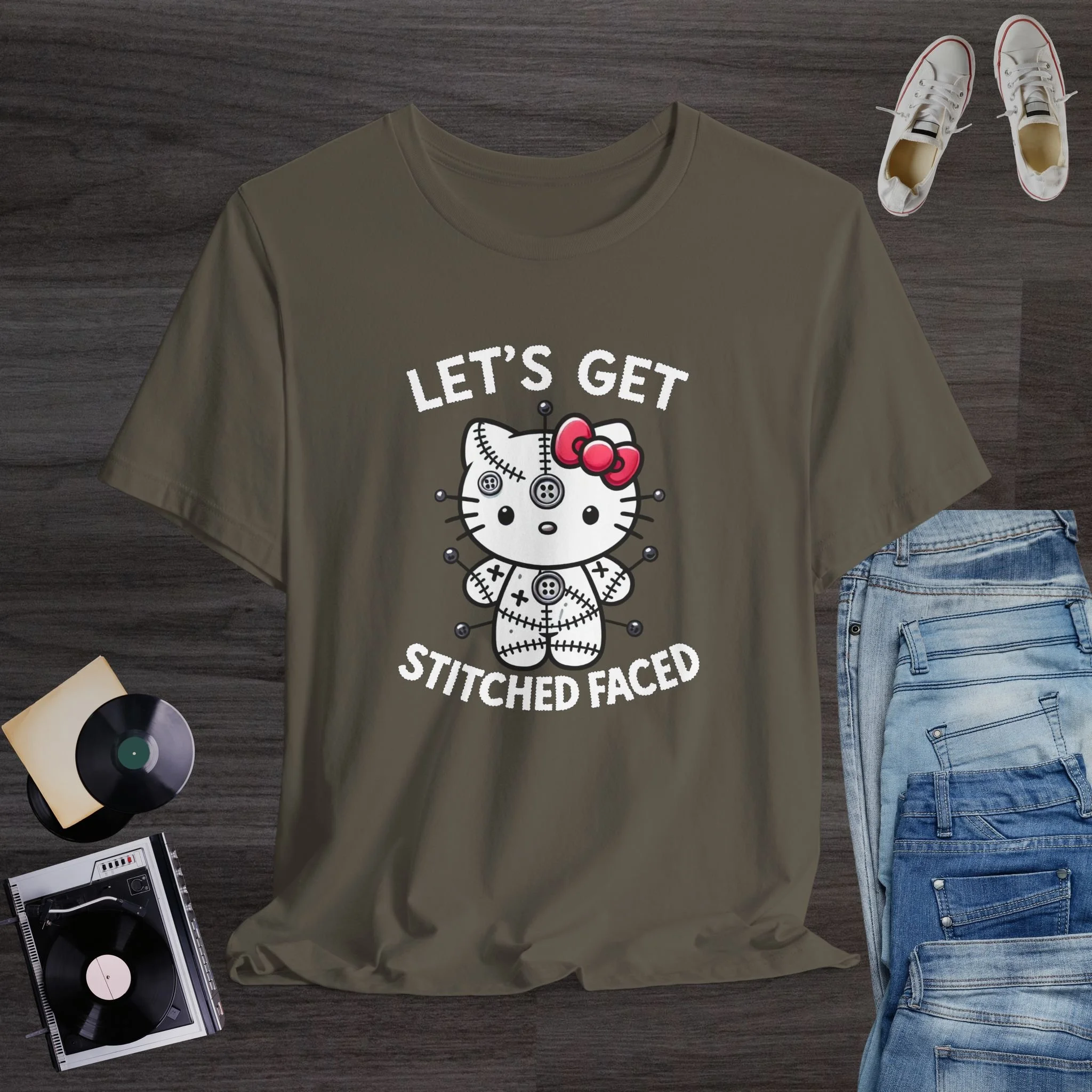 Add some spooky-cute attitude to your wardrobe with this adorable gothic voodoo doll T-shirt! Featuring hello kitty with button details, patchwork seams, and little pins for a fun voodoo-inspired look, this design blends horror aesthetic with kawaii charm. Perfect for Kitty Lovers, Halloween lovers, goth fashion fans, alternative style, or anyone who enjoys dark-cute artwork. Printed on a soft, comfy tee, this graphic makes a standout gift or everyday statement piece for those who love creepy-cute apparel and unique gothic designs.