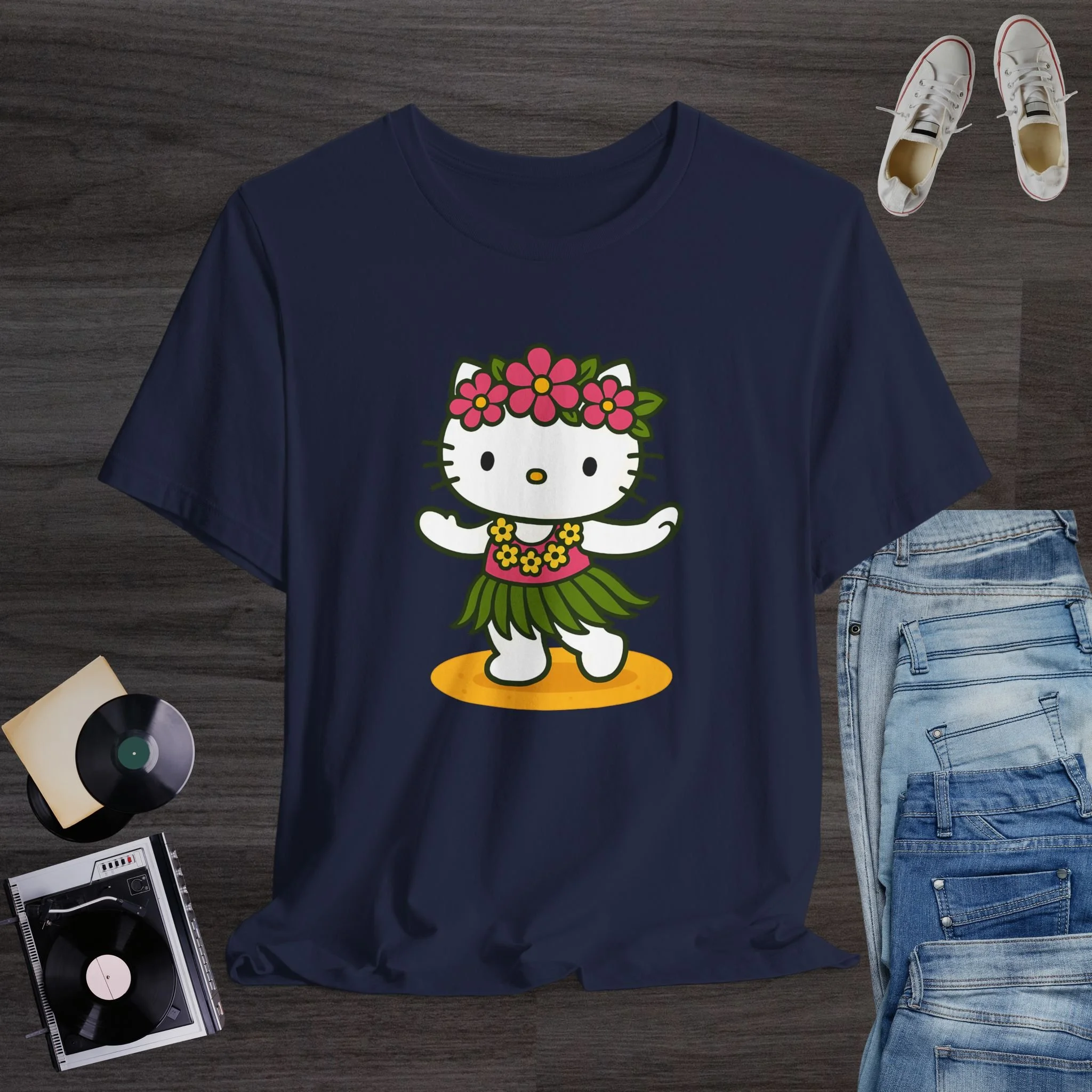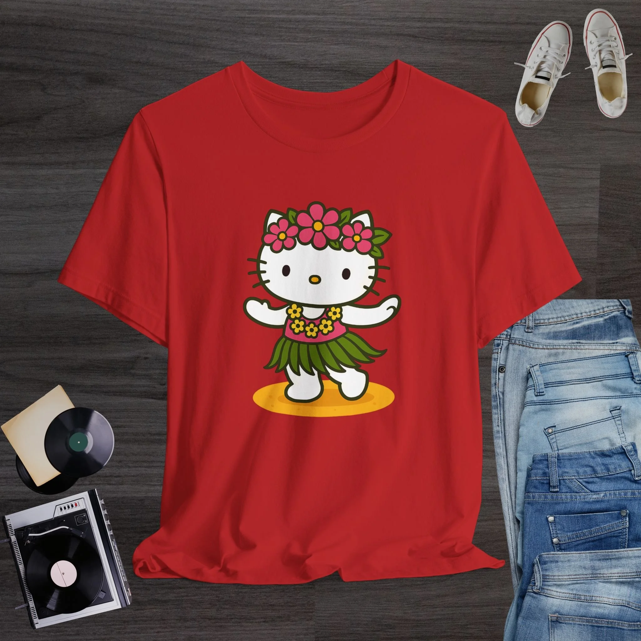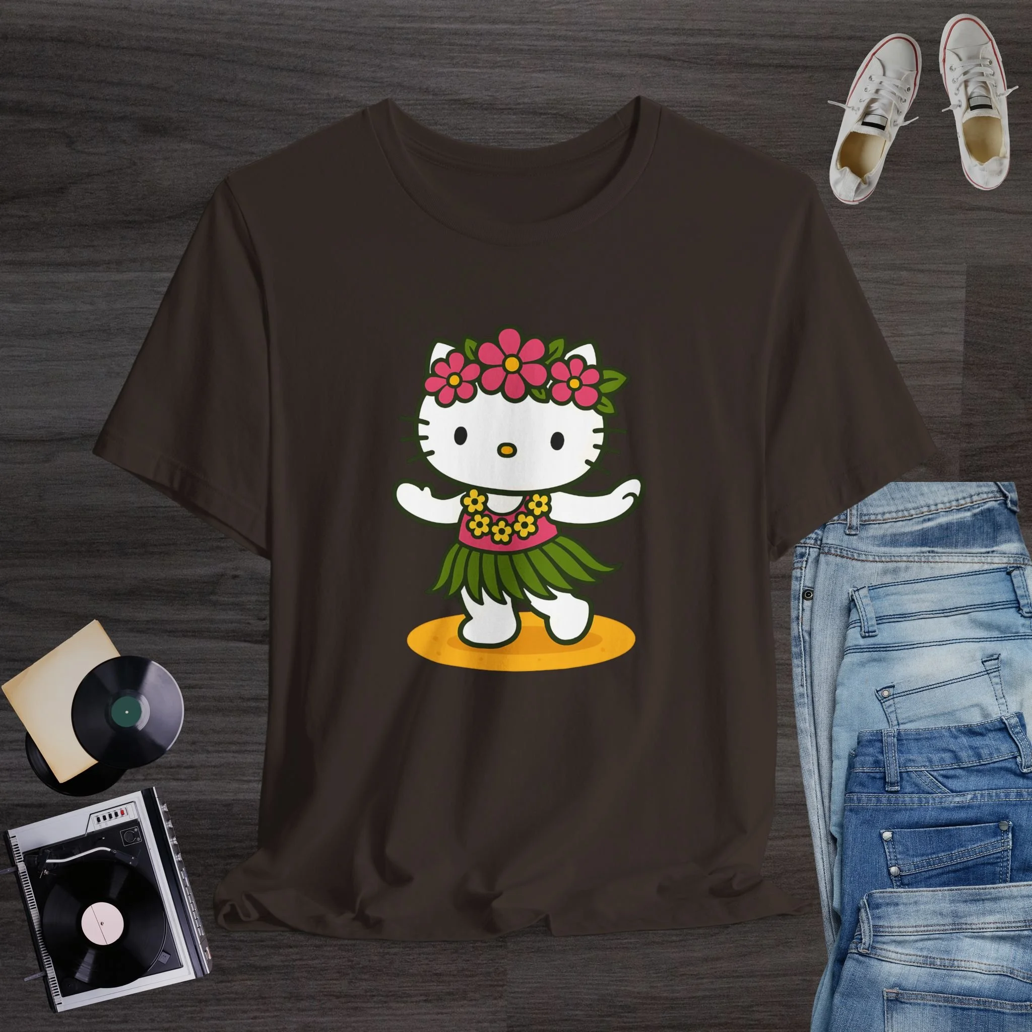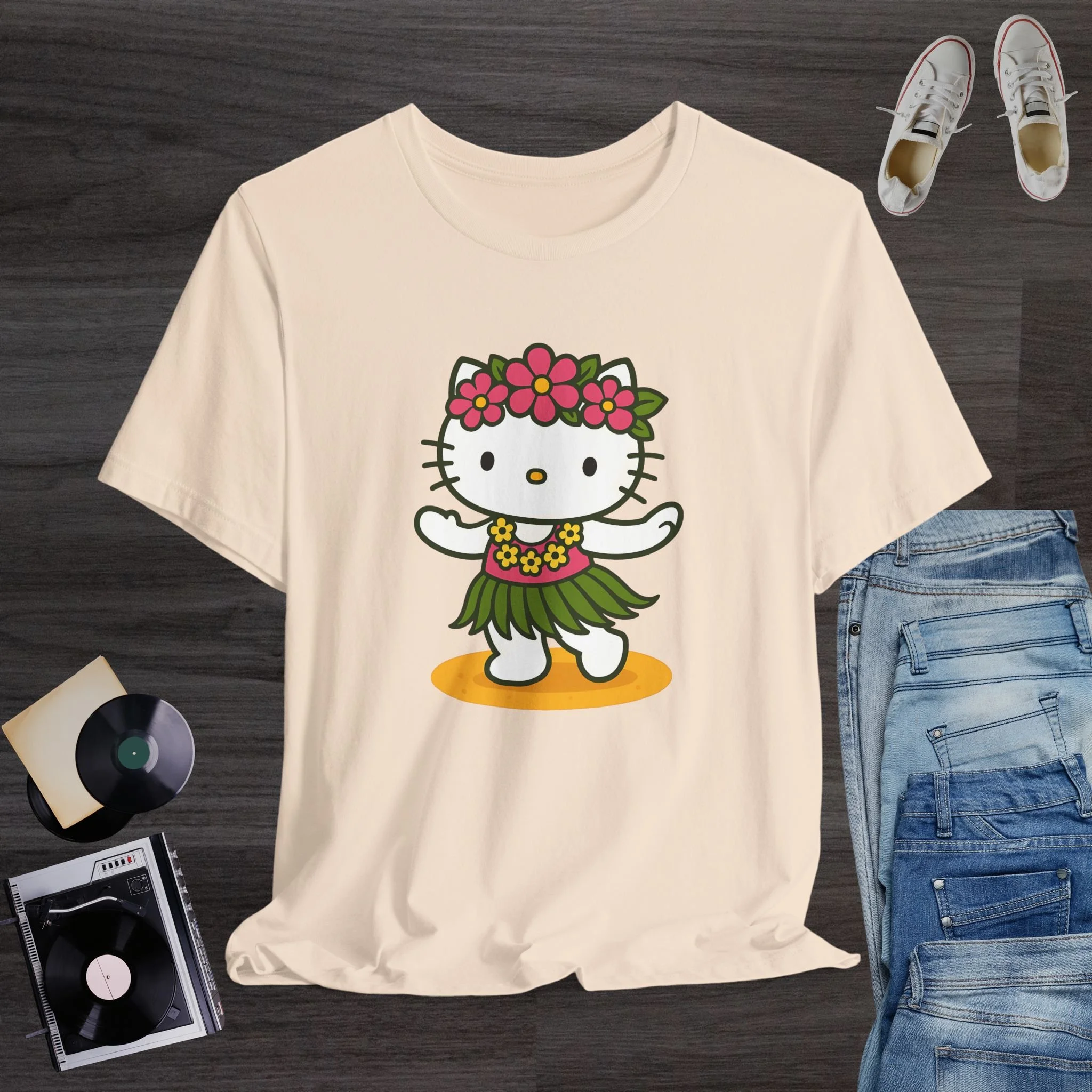 Cute Hula Kitty T-Shirt | Hawaiian Dance Tropical Kitty Summer Graphic Tee