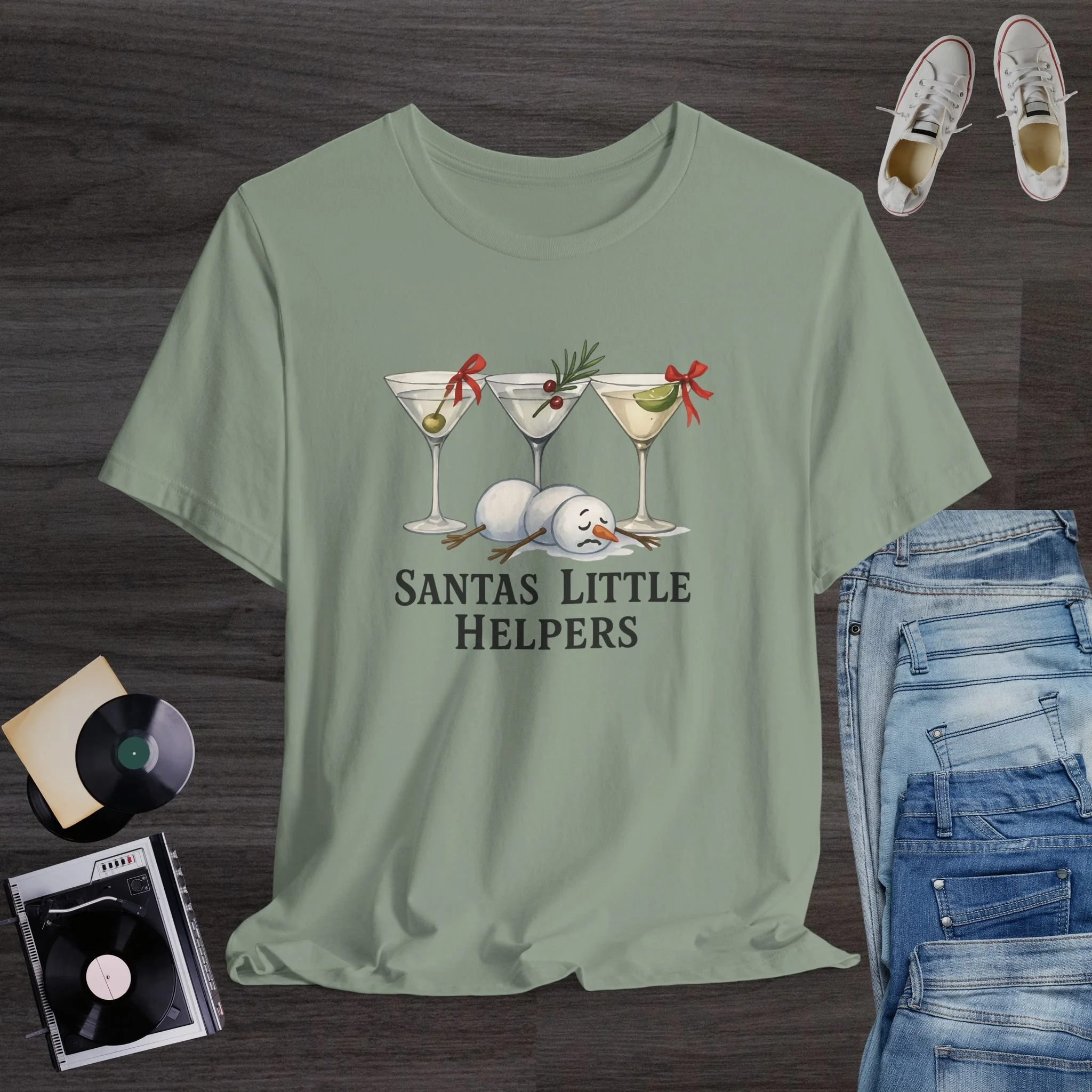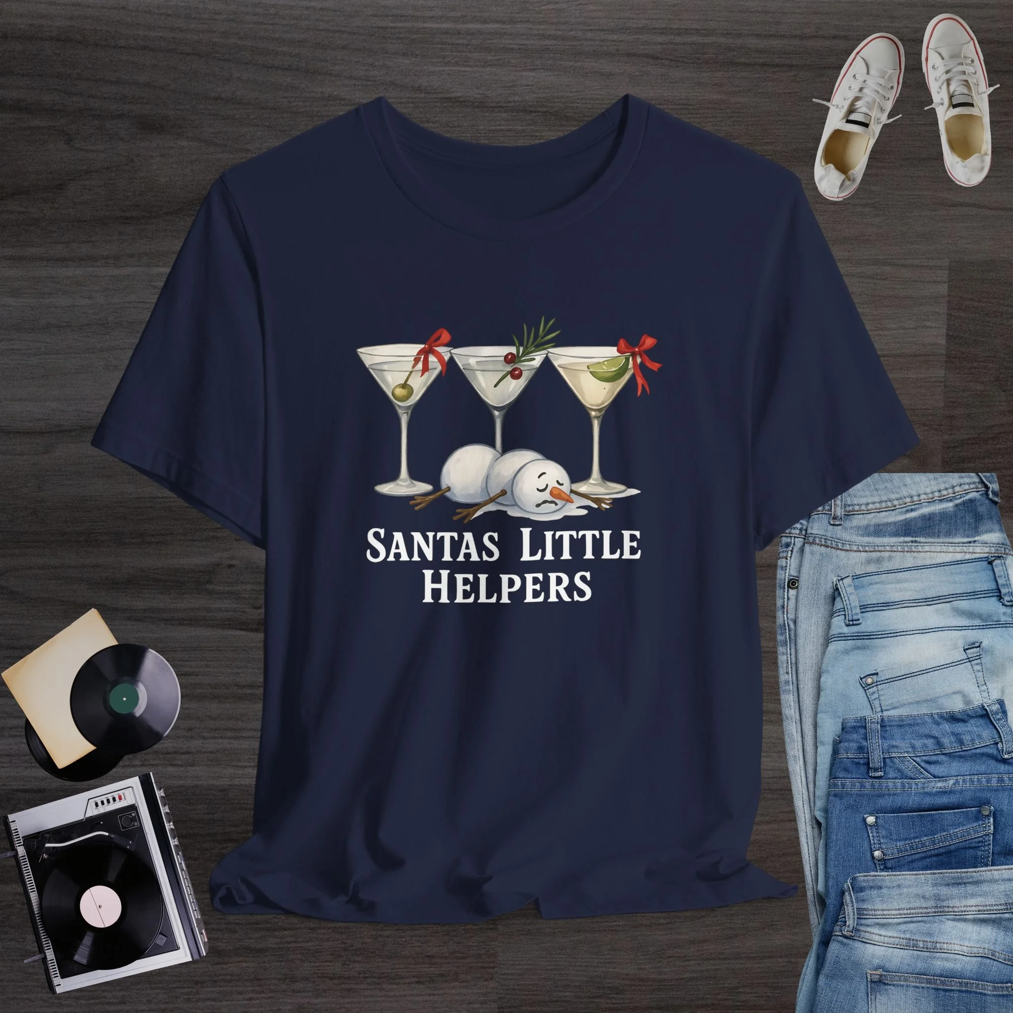 Bring the laughs to every holiday party with this hilarious “Santa’s Little Helpers” Christmas T-shirt! Featuring three festive martini glasses decorated with holiday garnishes and bows, plus an exhausted melted snowman sprawled beneath them, this design is perfect for anyone who loves Christmas cocktails, adult humor, and festive winter vibes. Ideal for holiday gatherings, office parties, girls’ night, matching party shirts, or a funny Christmas gift for friends who enjoy a good drink. Printed on a soft and comfortable tee, it’s the perfect mix of seasonal cheer and cheeky humor.