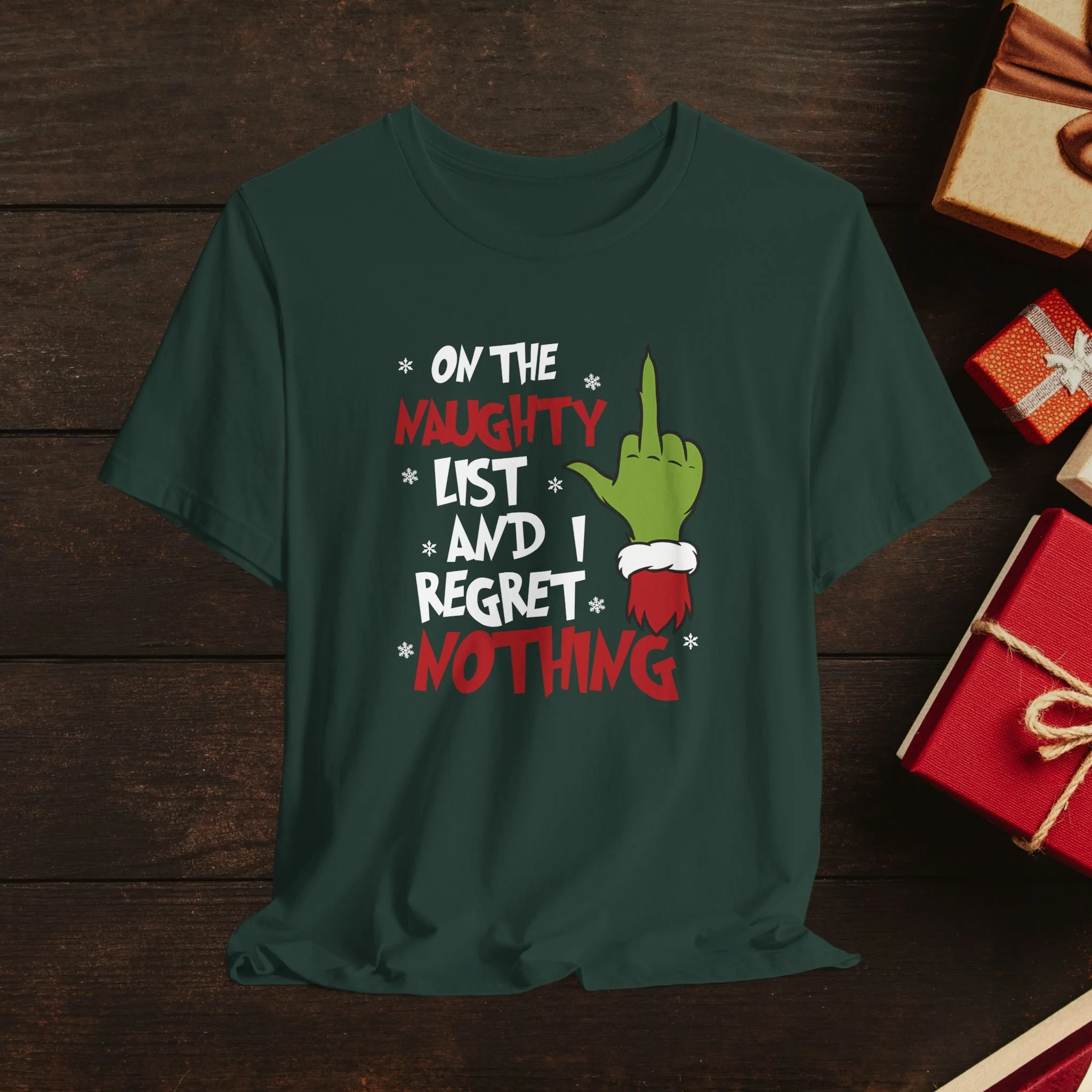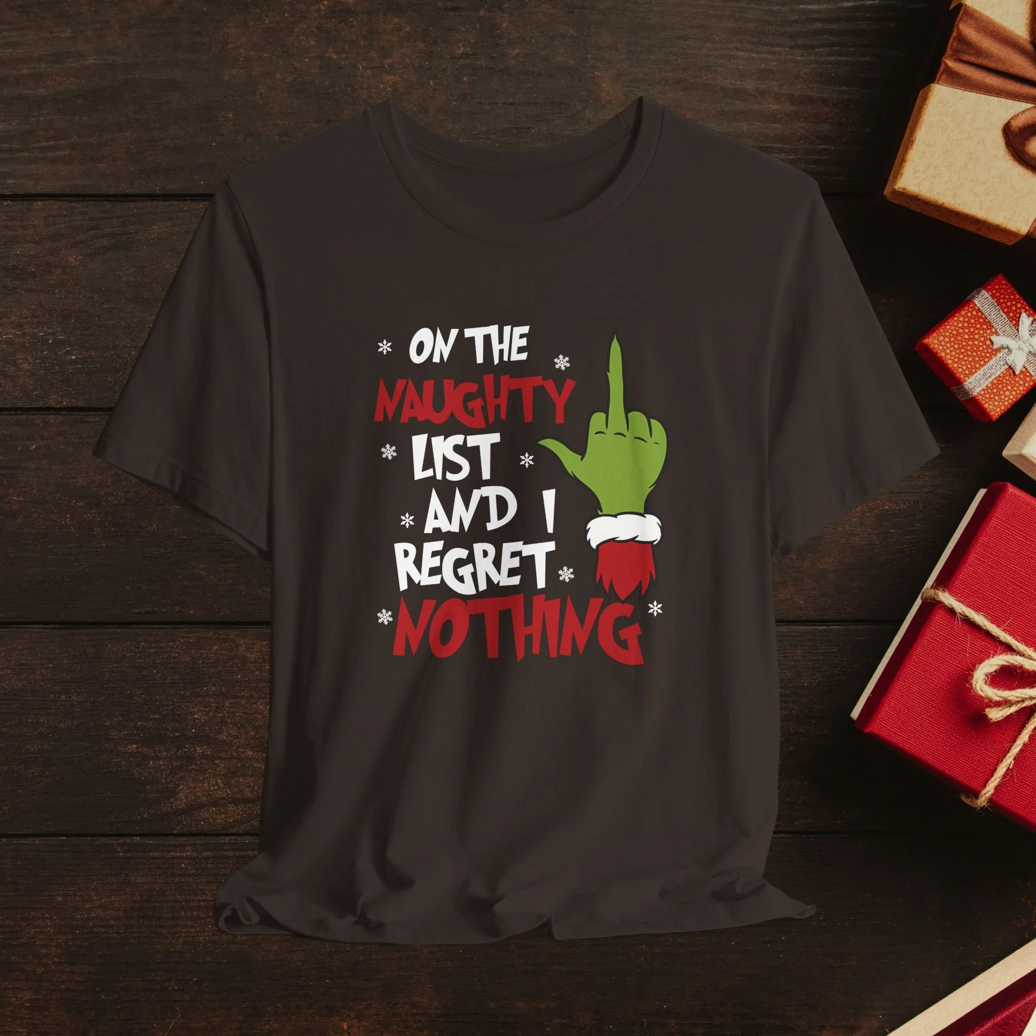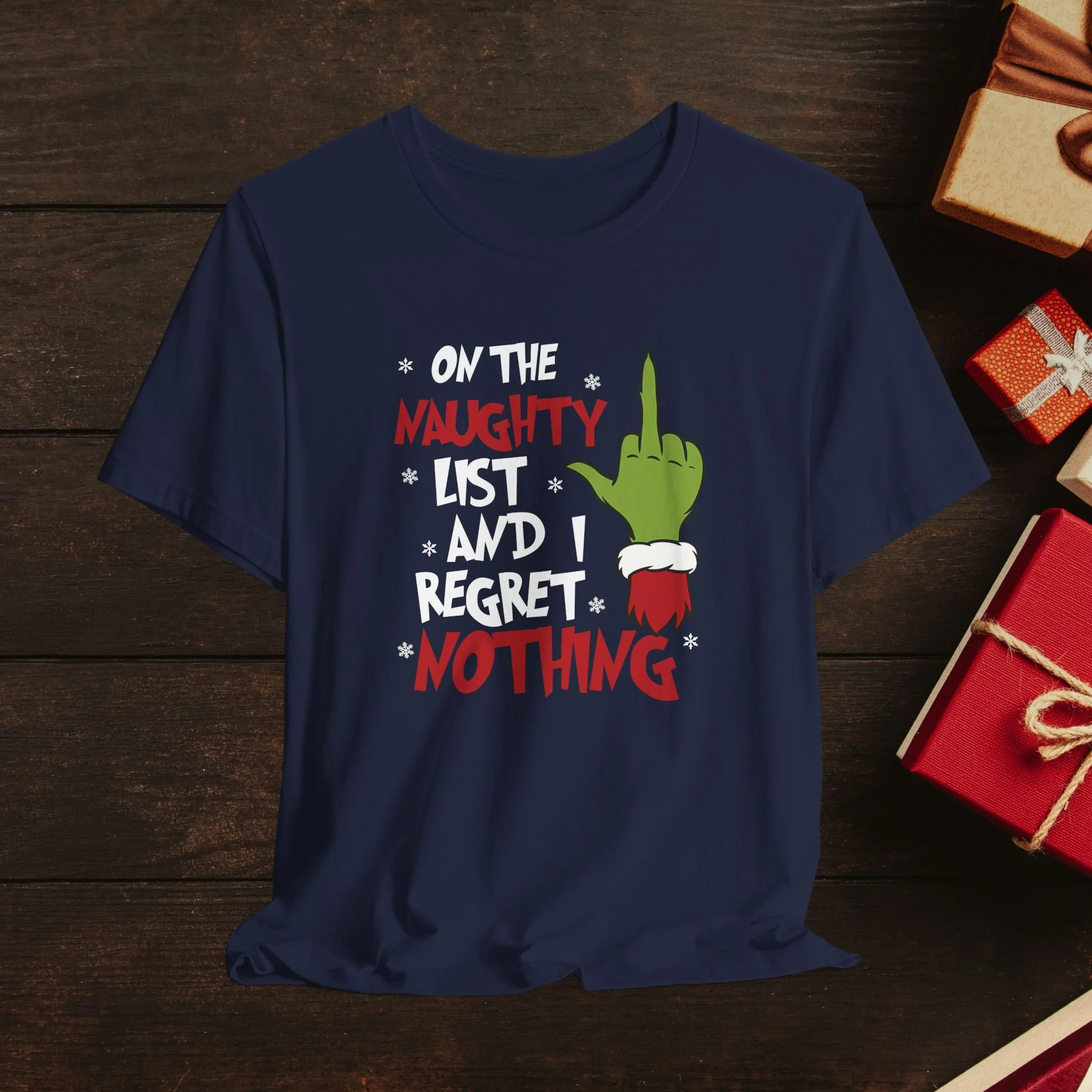 Funny Naughty List Christmas T-Shirt | Sarcastic Holiday Humor Graphic Tee for Adults