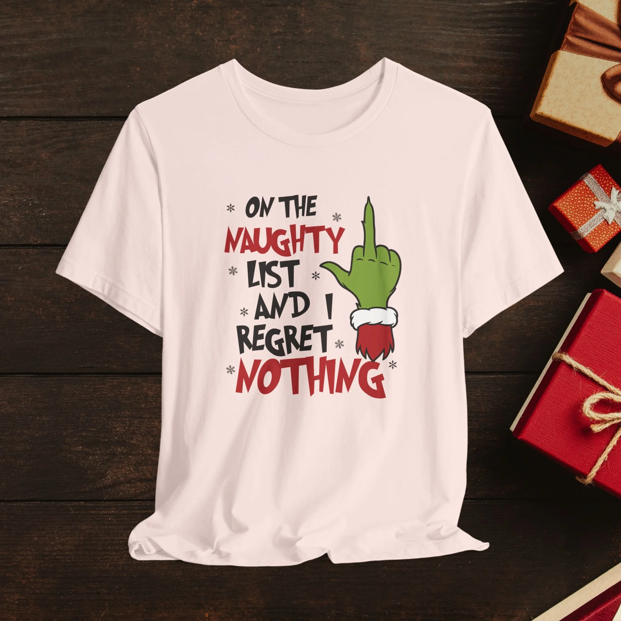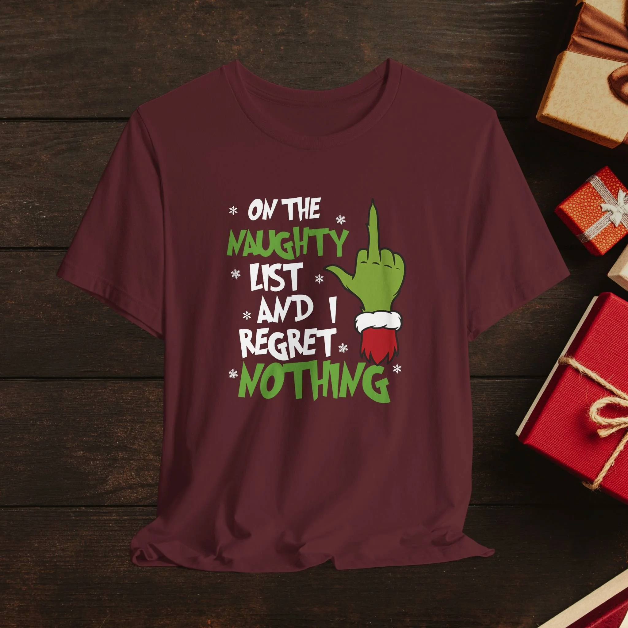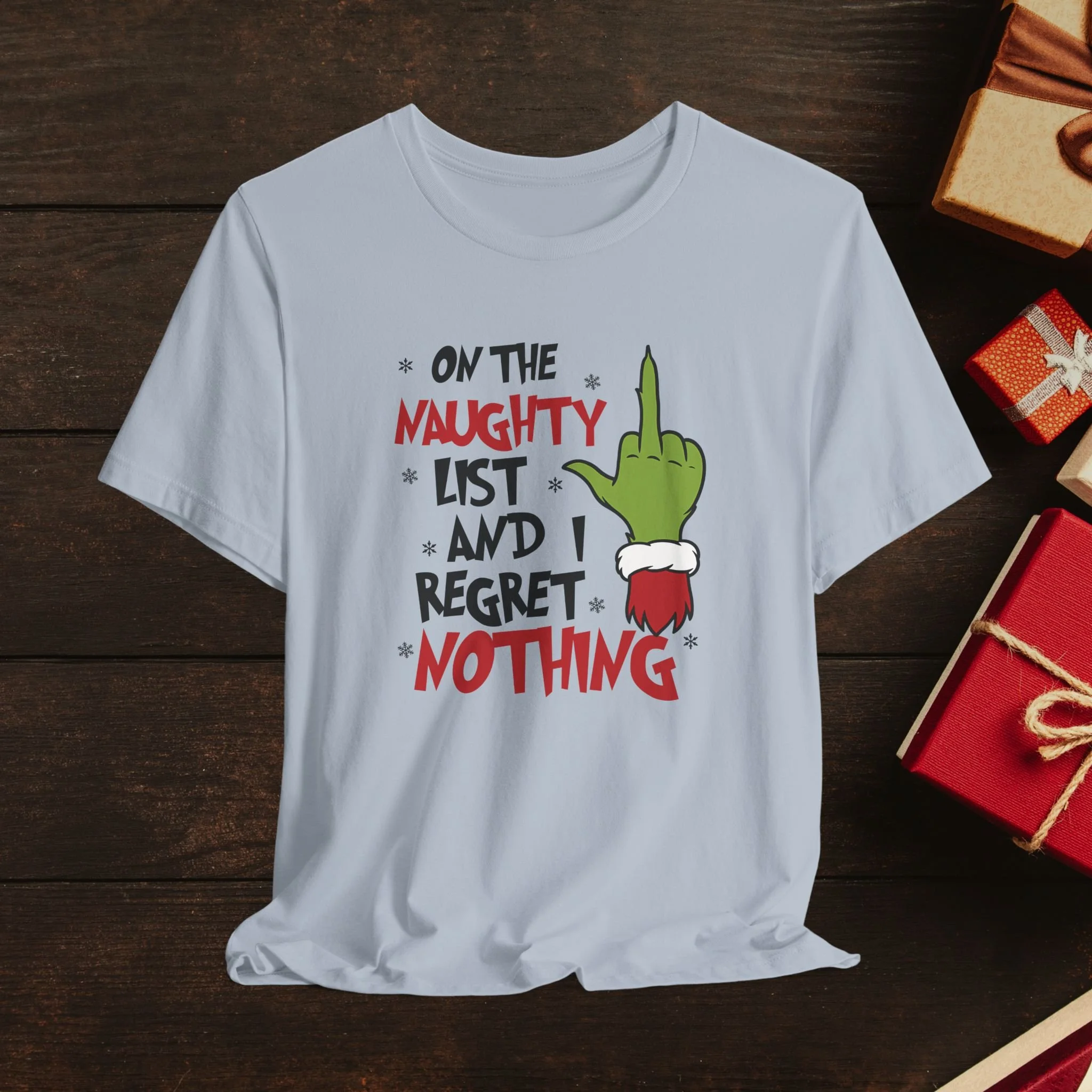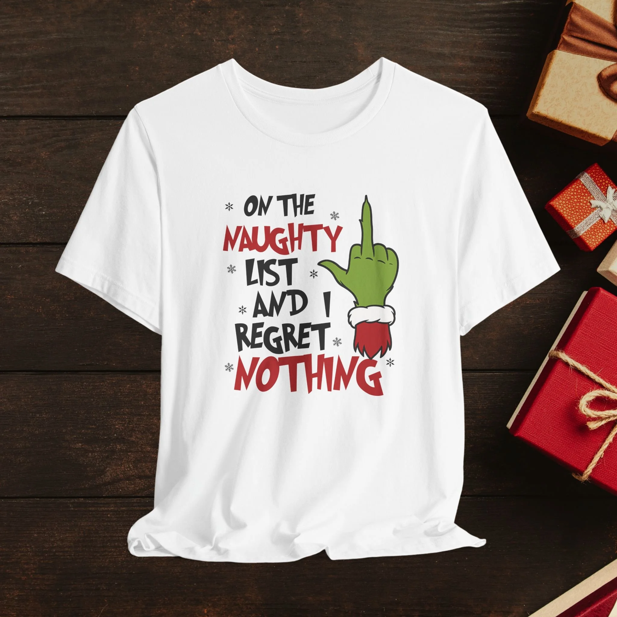 Funny Naughty List Christmas T-Shirt | Sarcastic Holiday Humor Graphic Tee for Adults
