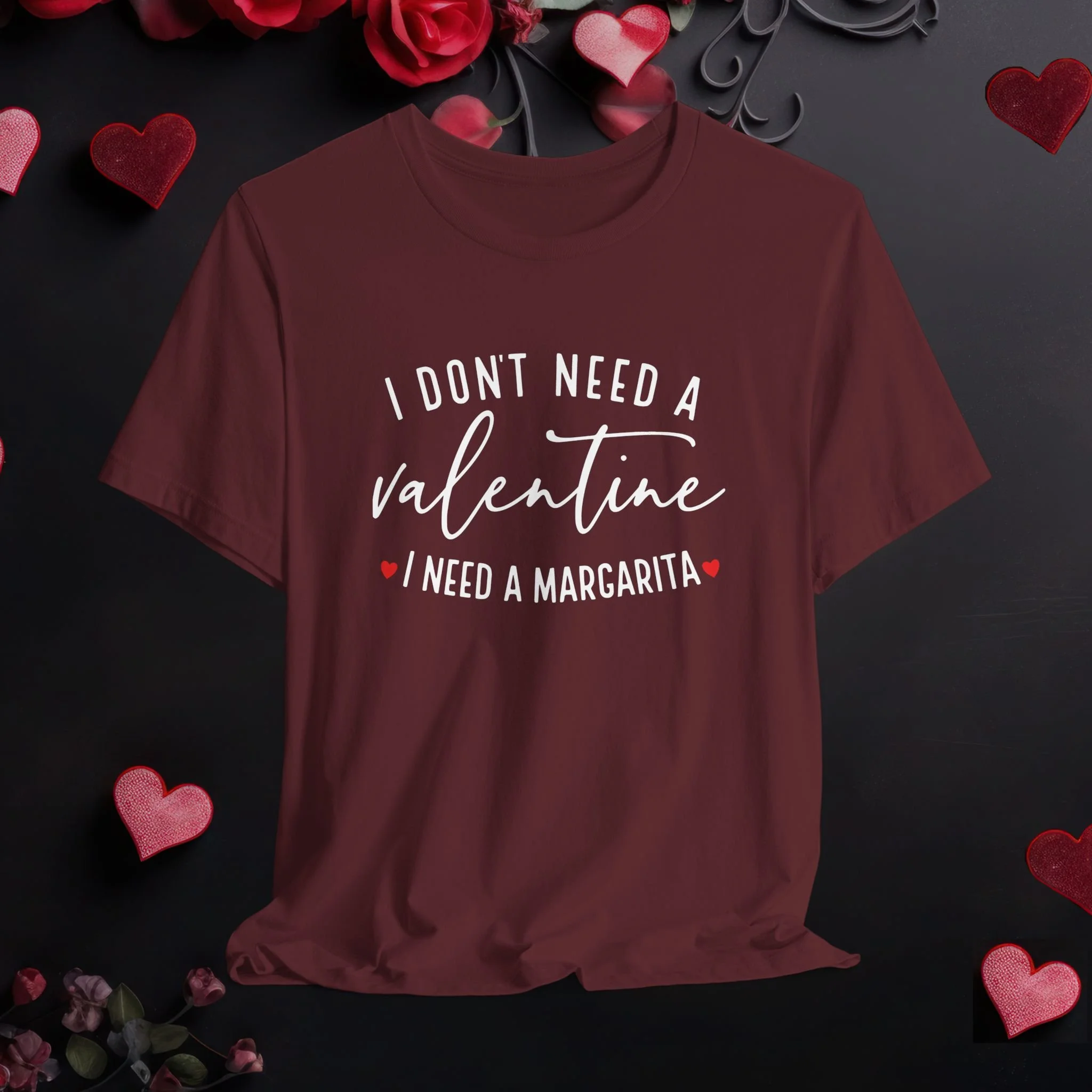 Funny Valentine margarita shirt with the phrase I don’t need a Valentine I need a margarita. Perfect Galentine’s Day tee for cocktail lovers.