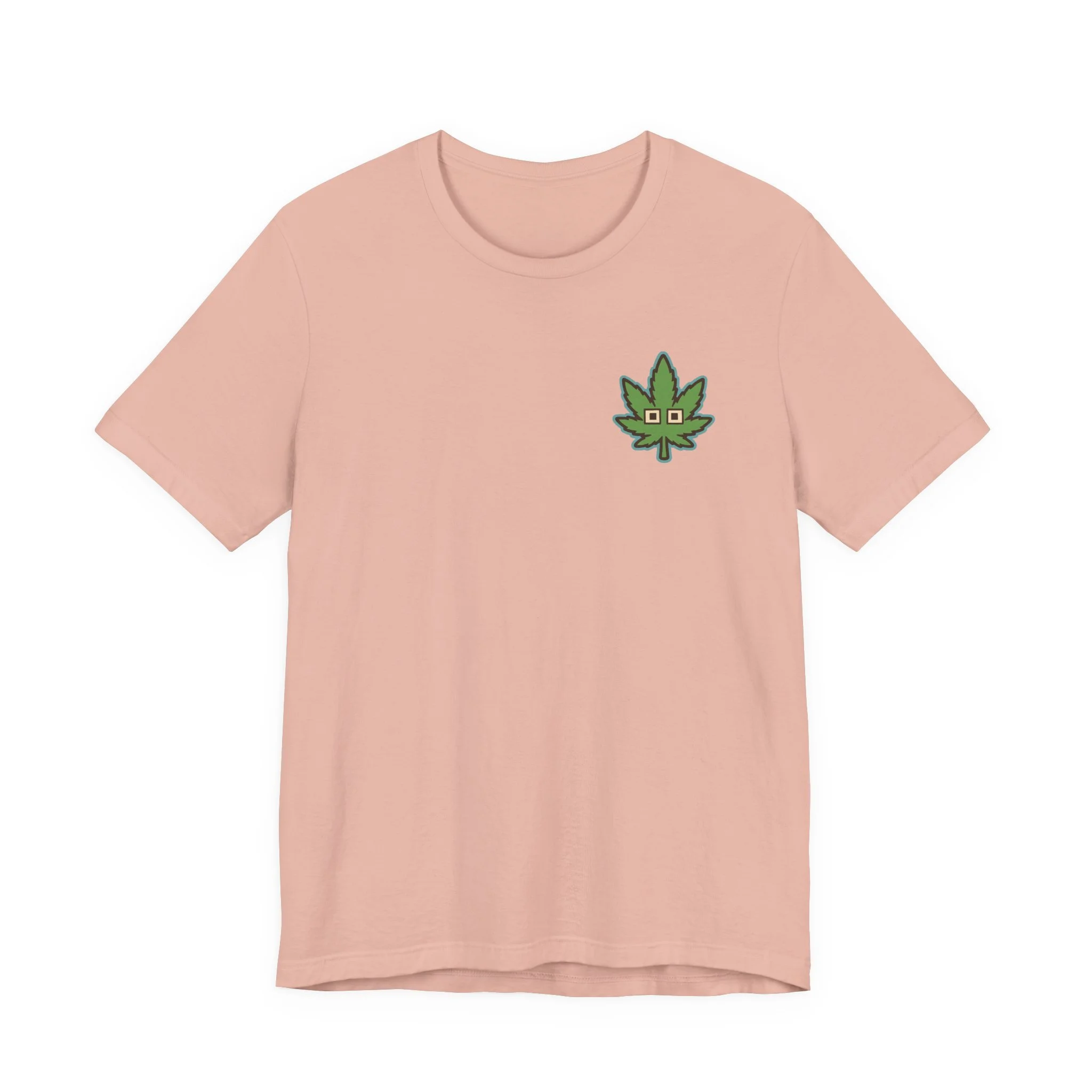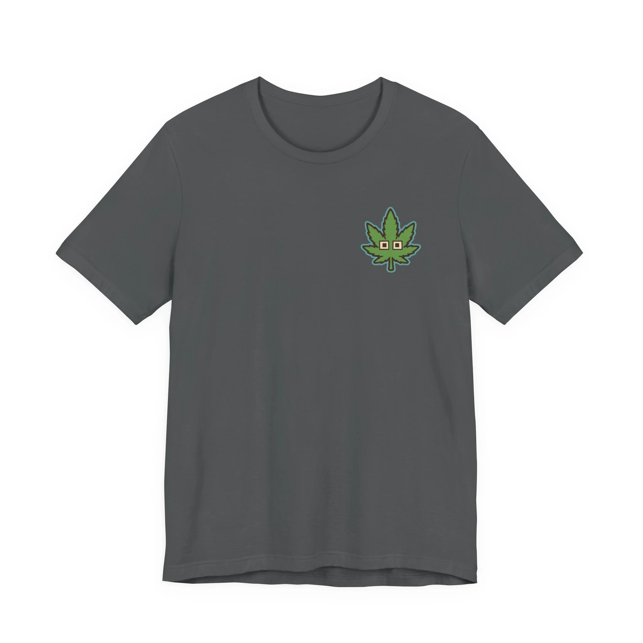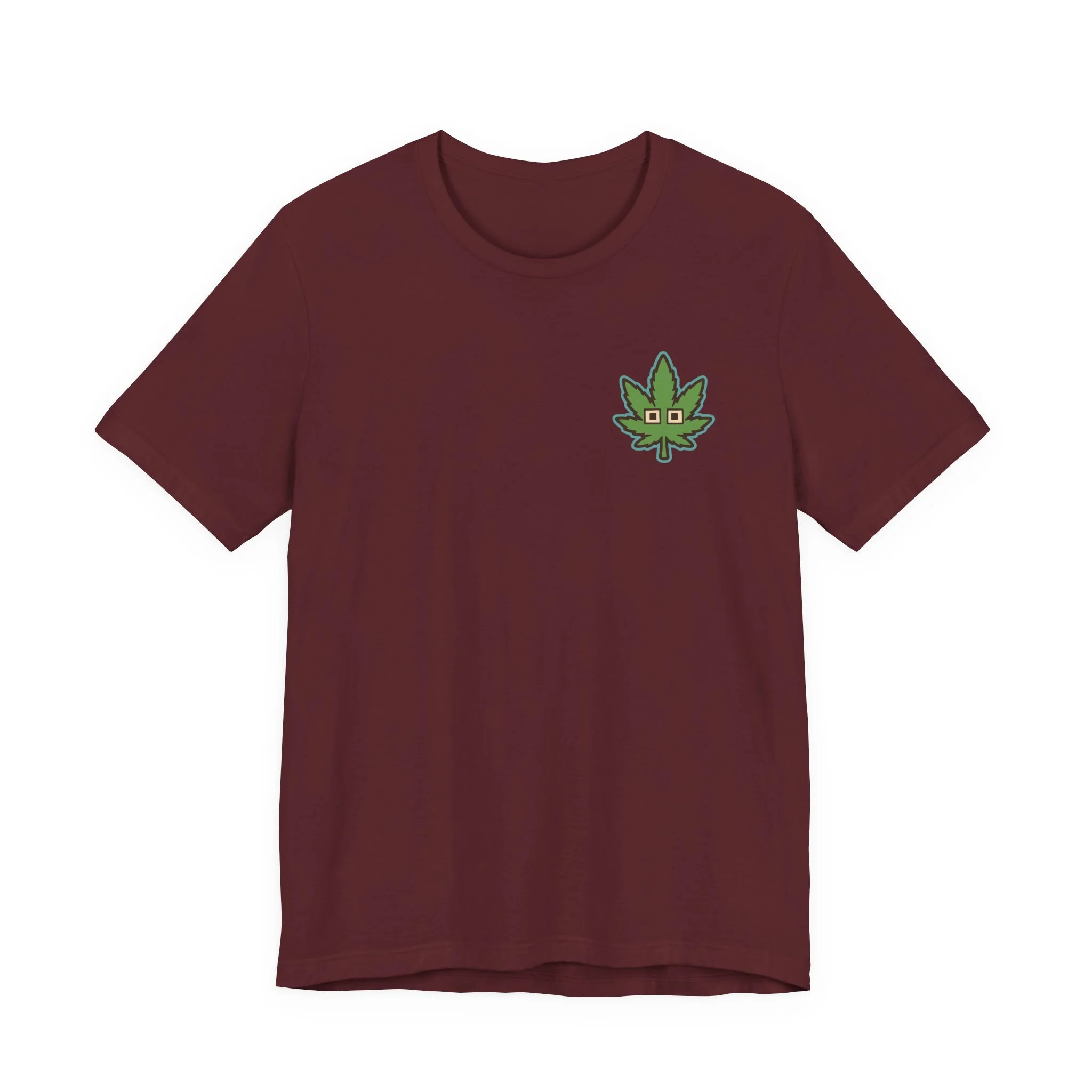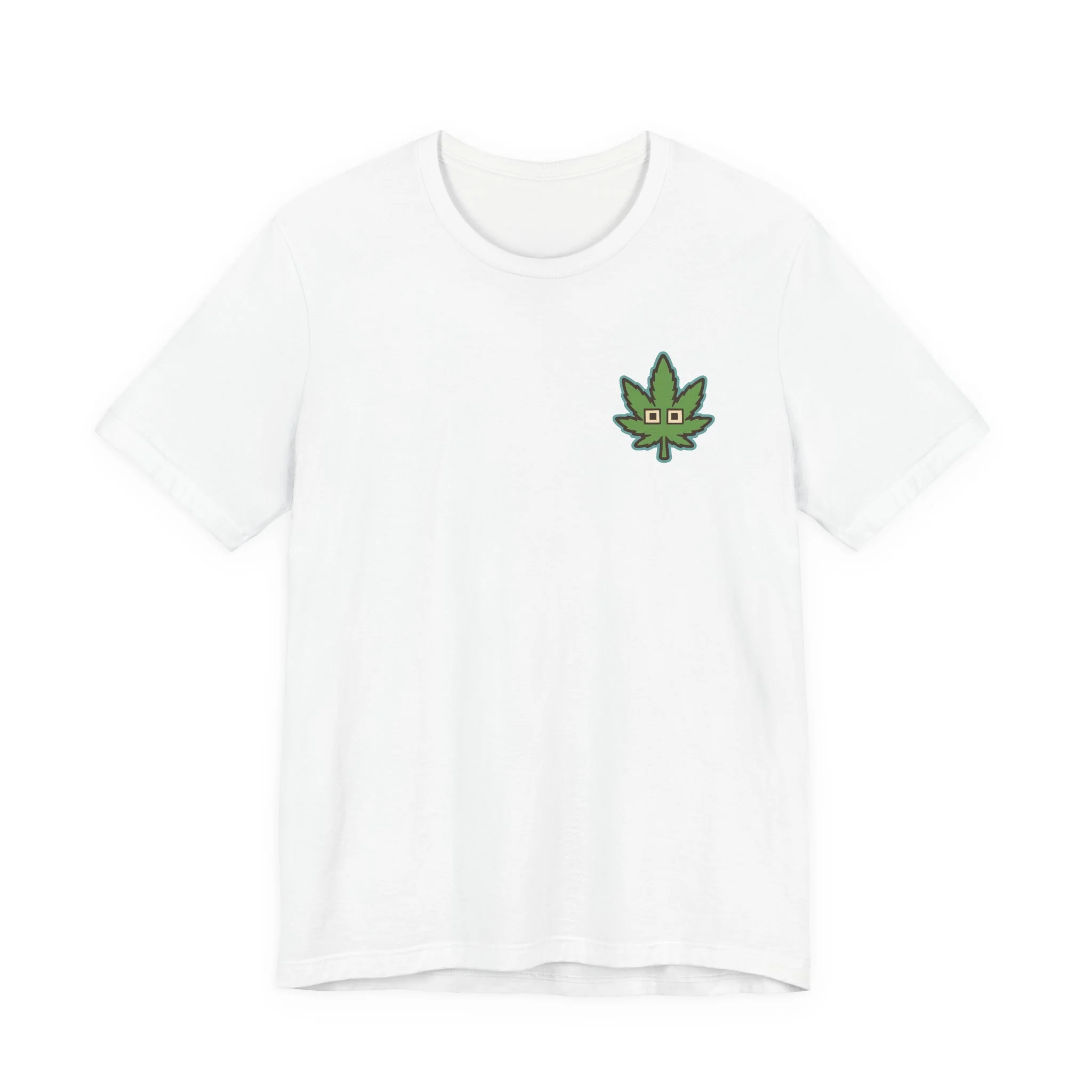 Funny Weed Leaf Face Tee & Rolling Joint Back Design Stoner Shirt