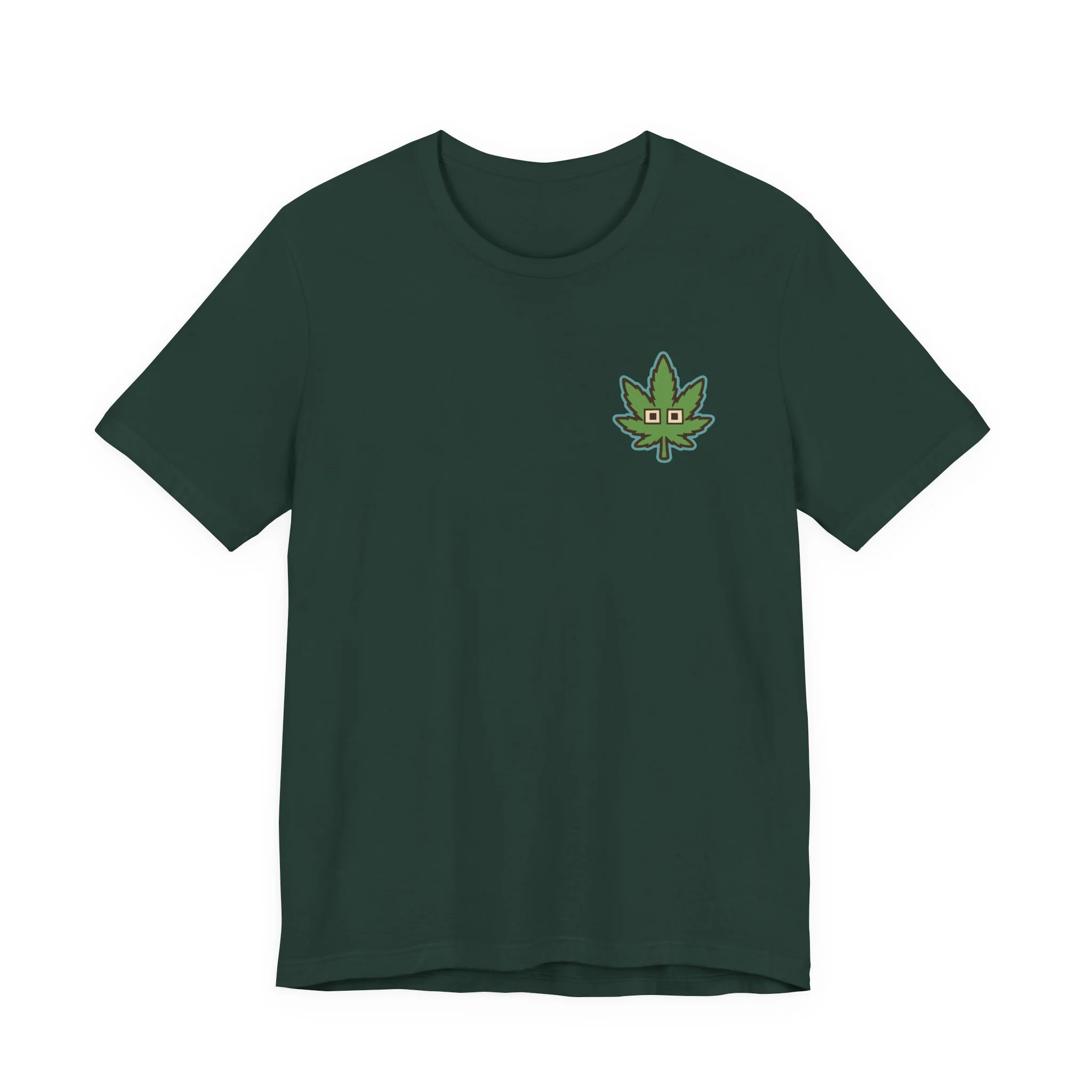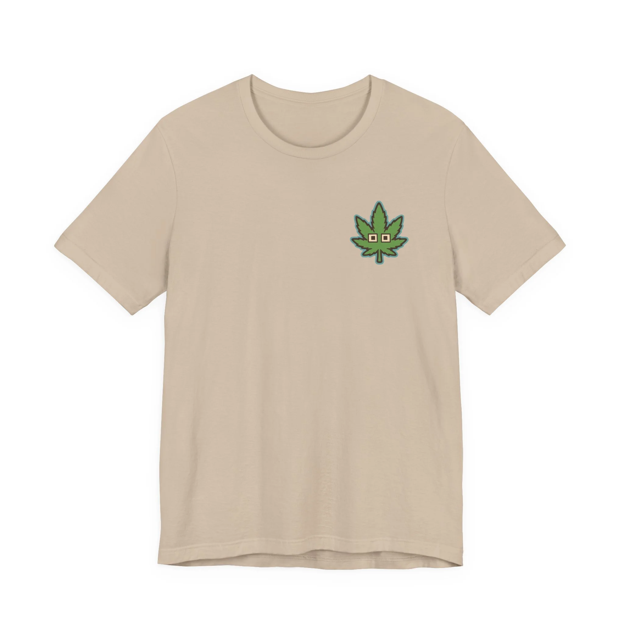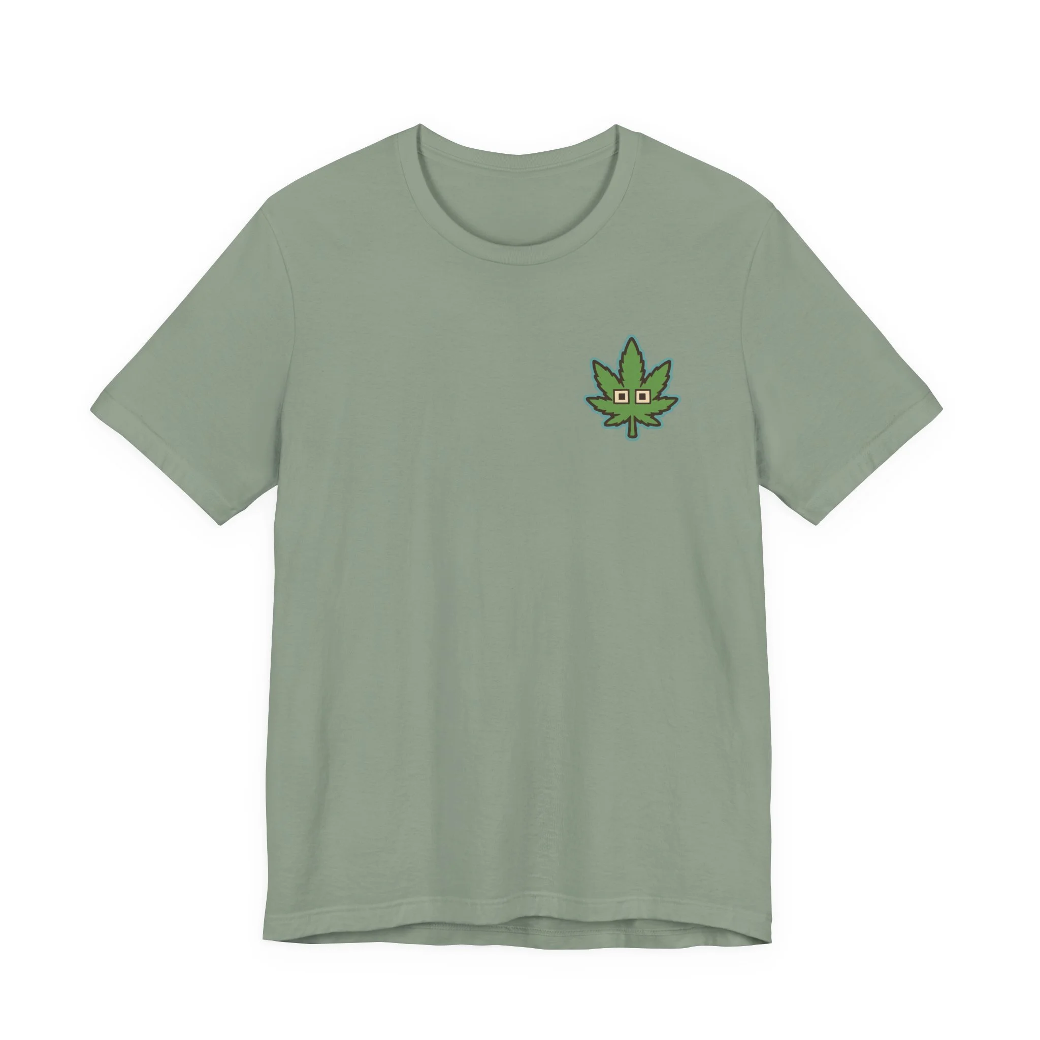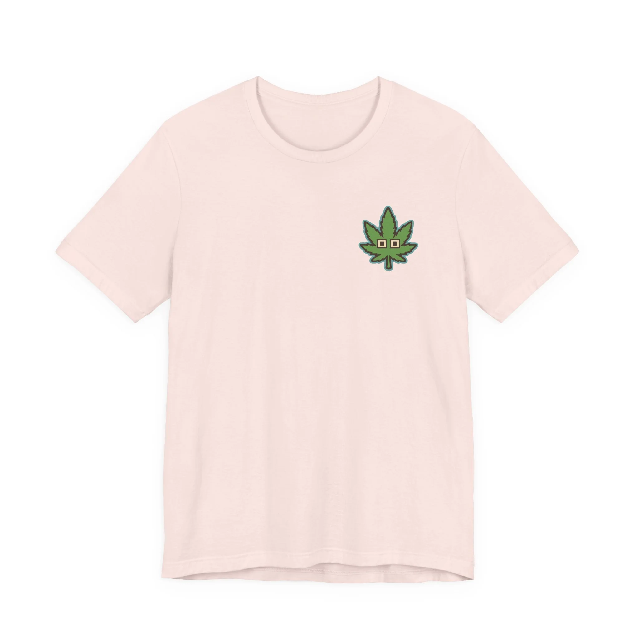 Funny Weed Leaf Face Tee & Rolling Joint Back Design Stoner Shirt