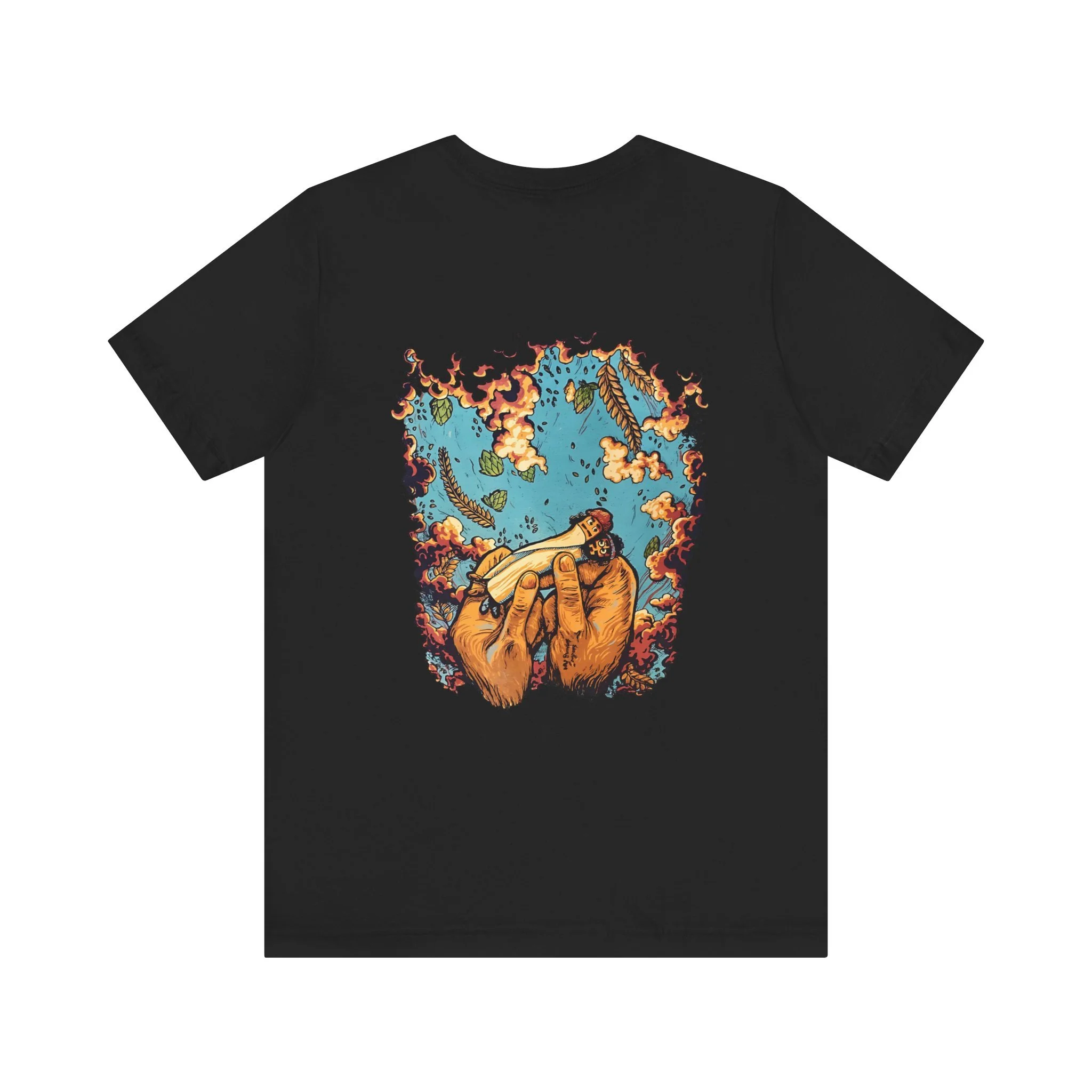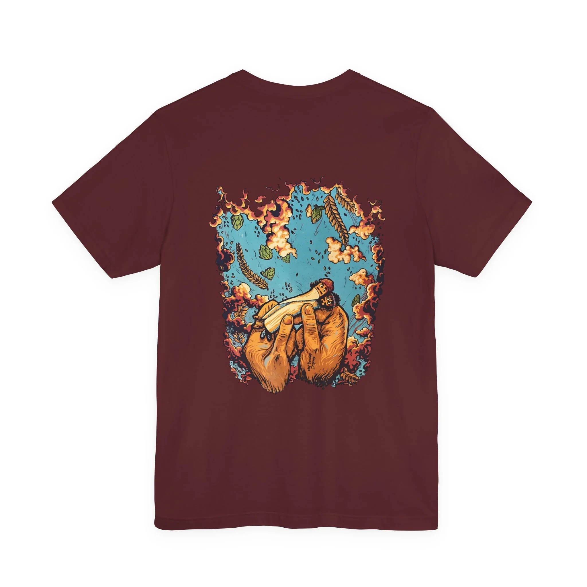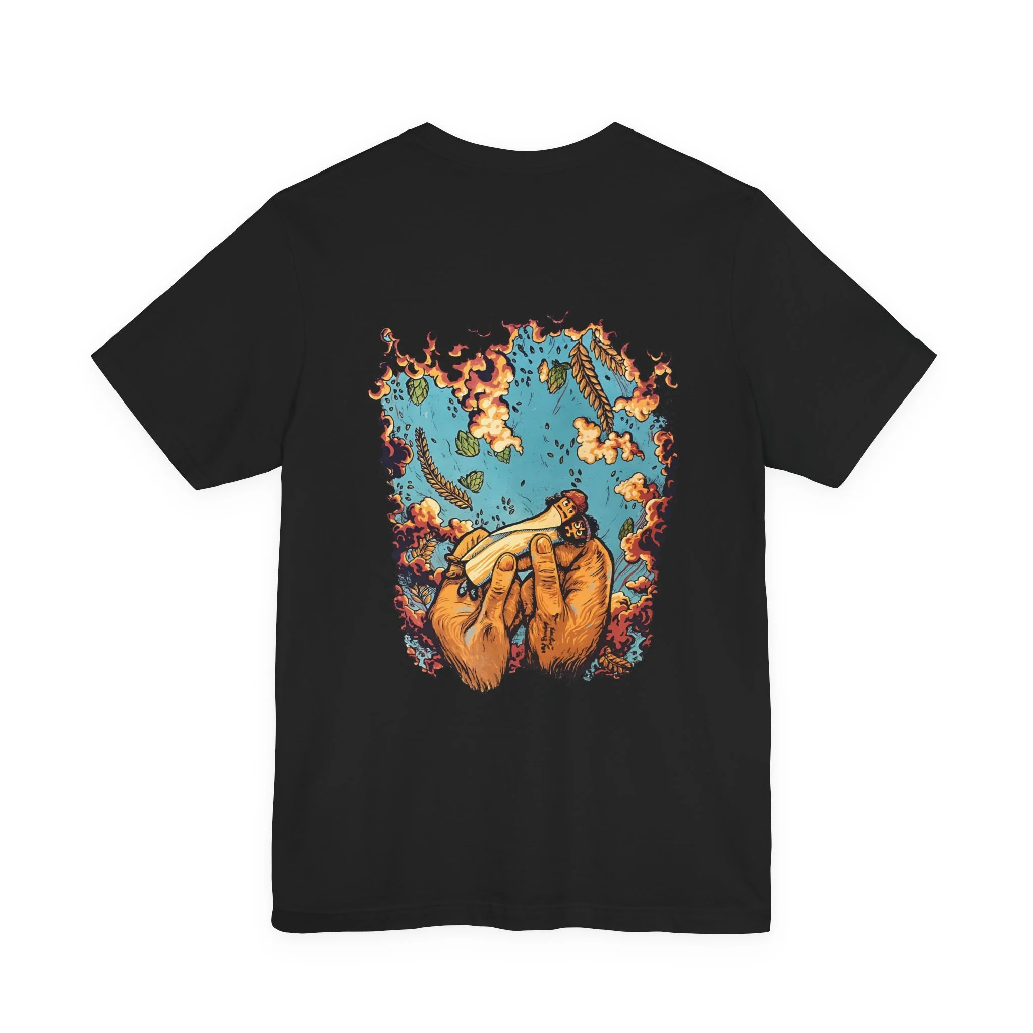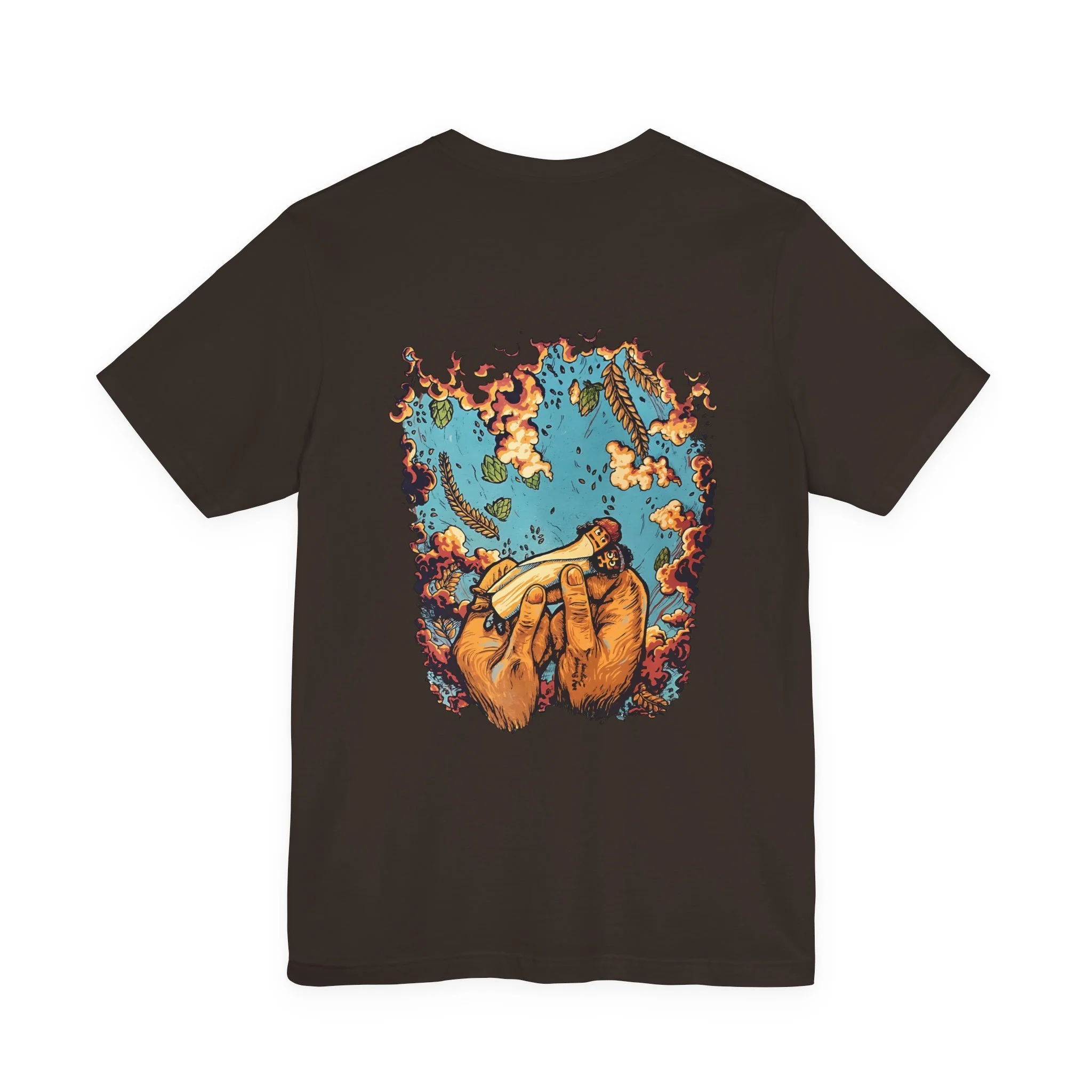 Funny Weed Leaf Face Tee & Rolling Joint Back Design Stoner Shirt