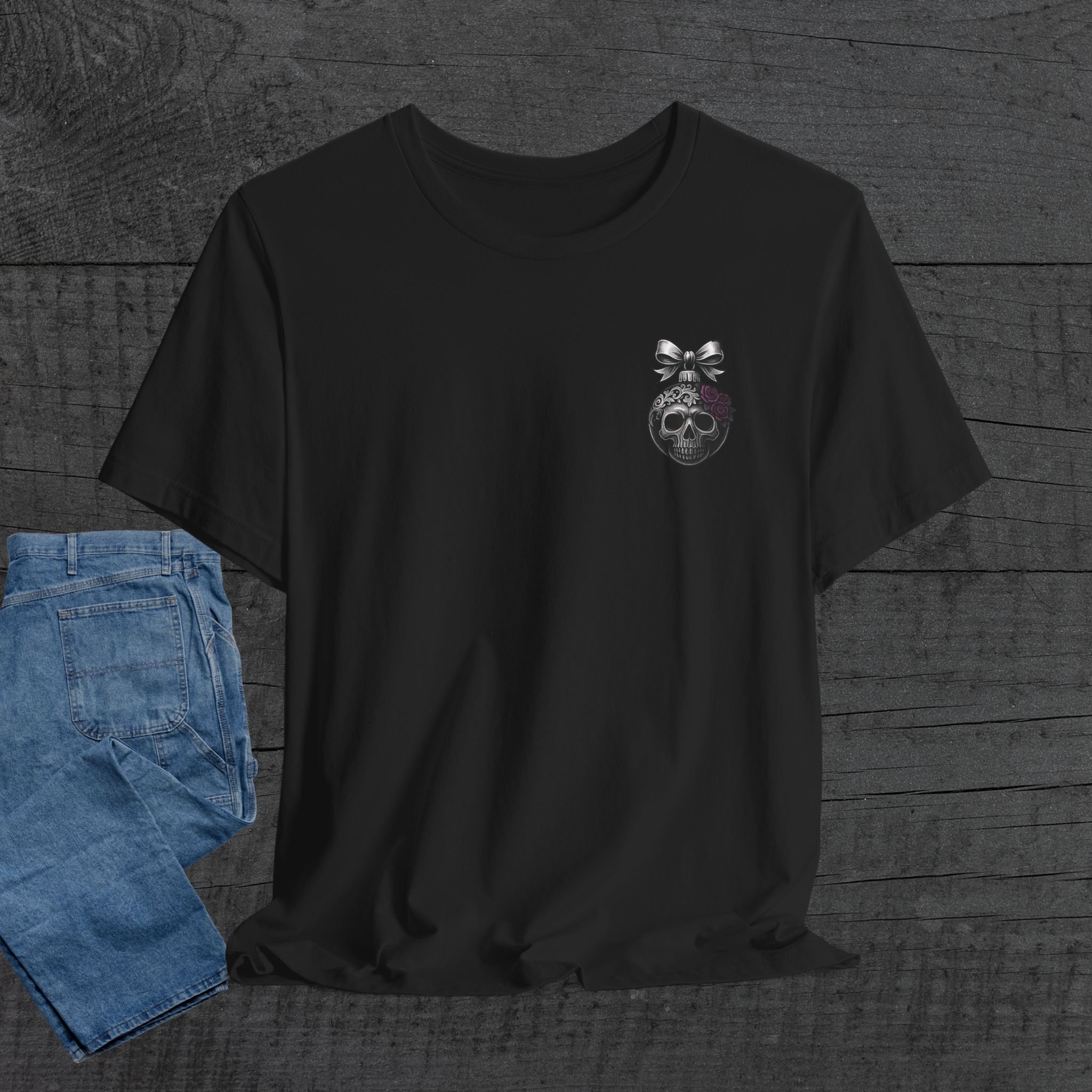 Elevate your dark aesthetic with this double-sided gothic skull and rose shirt featuring “Cute But Deadly” artwork on the back and a bold skull-and-brass-knuckle rose design on the front. Perfect for fans of alternative fashion, edgy streetwear, tattoo-inspired art, and gothic apparel. This unique graphic tee makes a standout everyday piece or the perfect gift for anyone who loves dark, floral, punk-inspired styles. Designed for comfort, attitude, and killer style — always Perfect to the T.