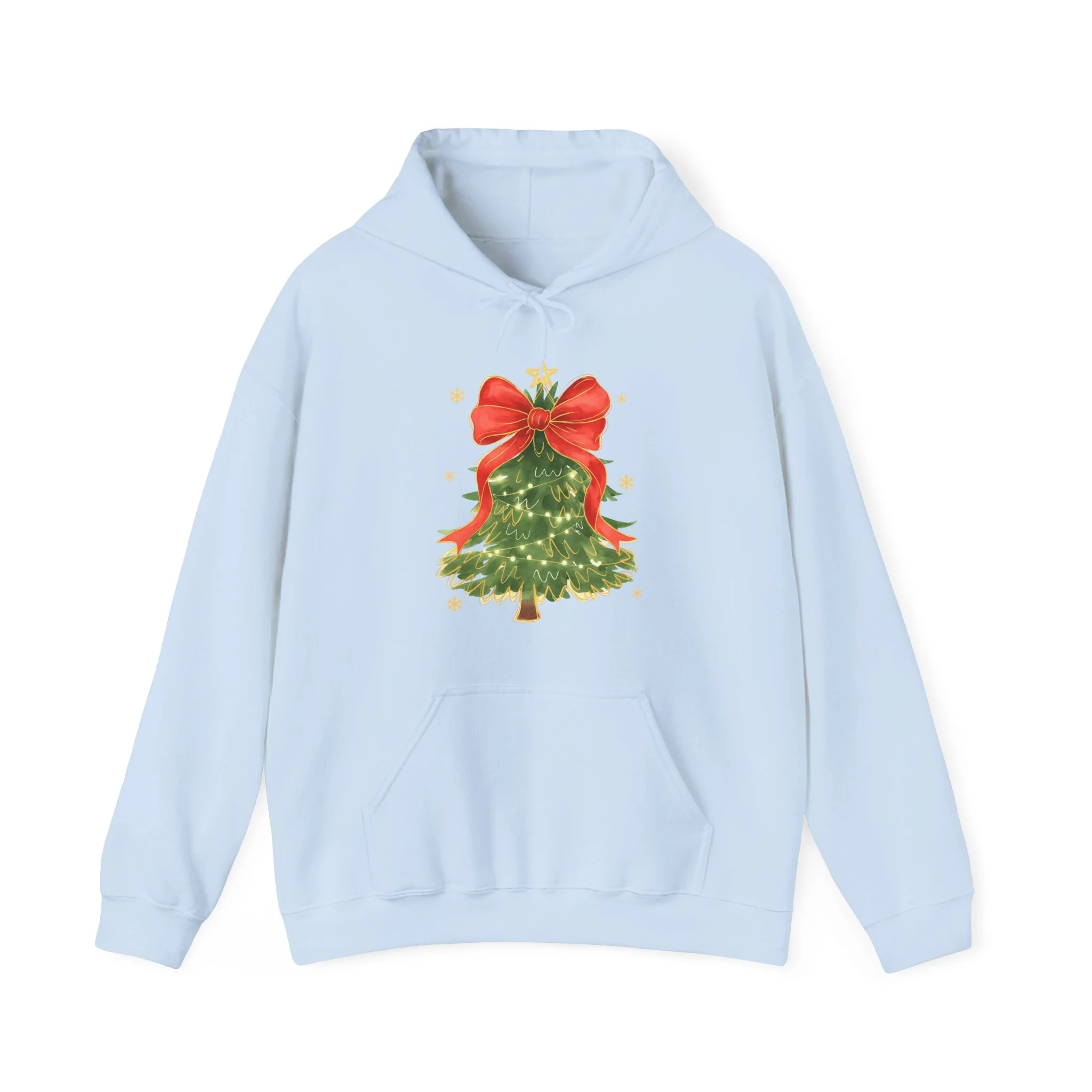 Elegant Red Bow Watercolor Christmas Tree Hoodie