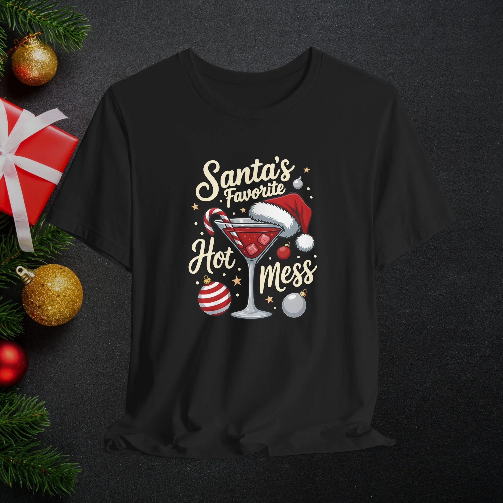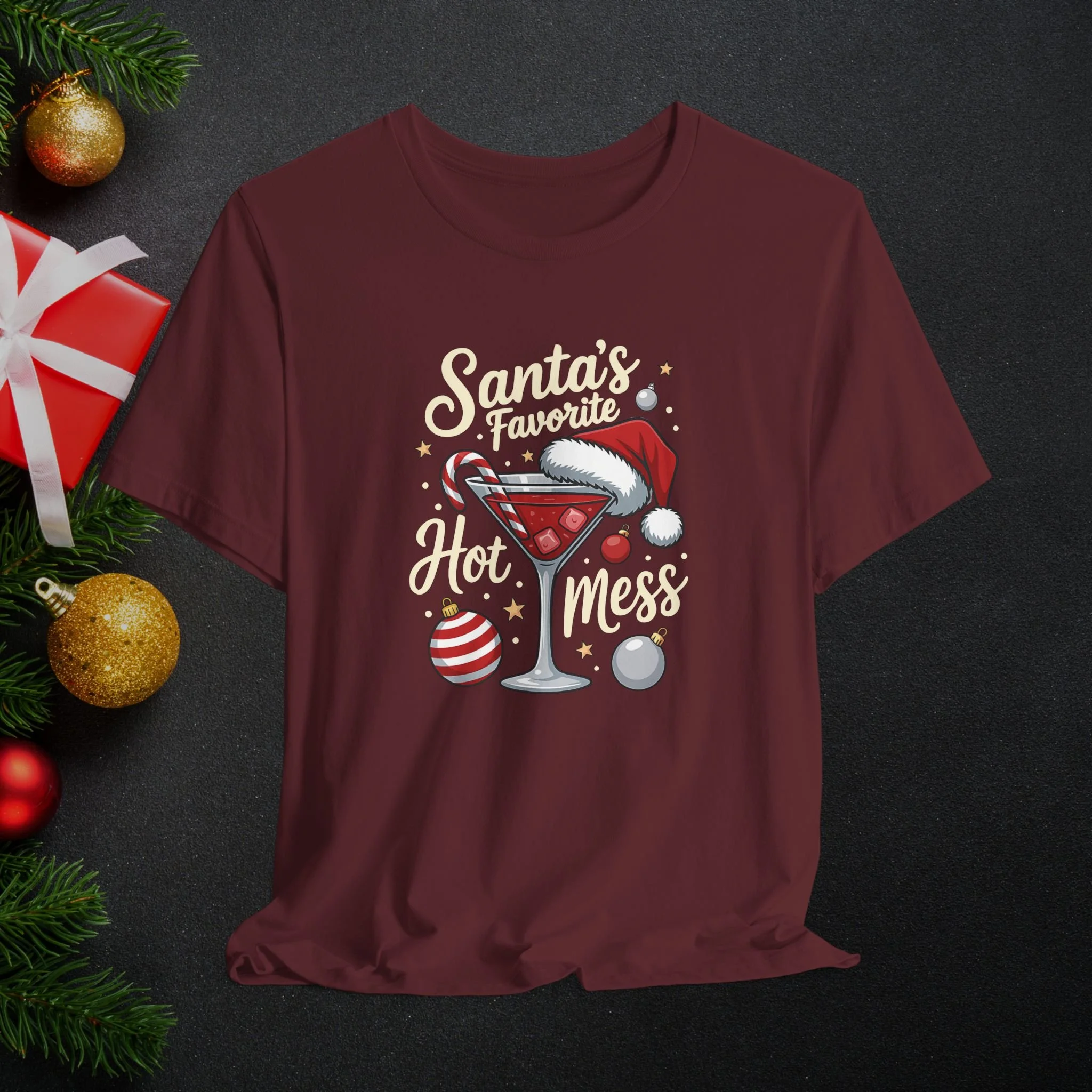 Santa’s Favorite Hot Mess Shirt, Funny Christmas Cocktail Tee