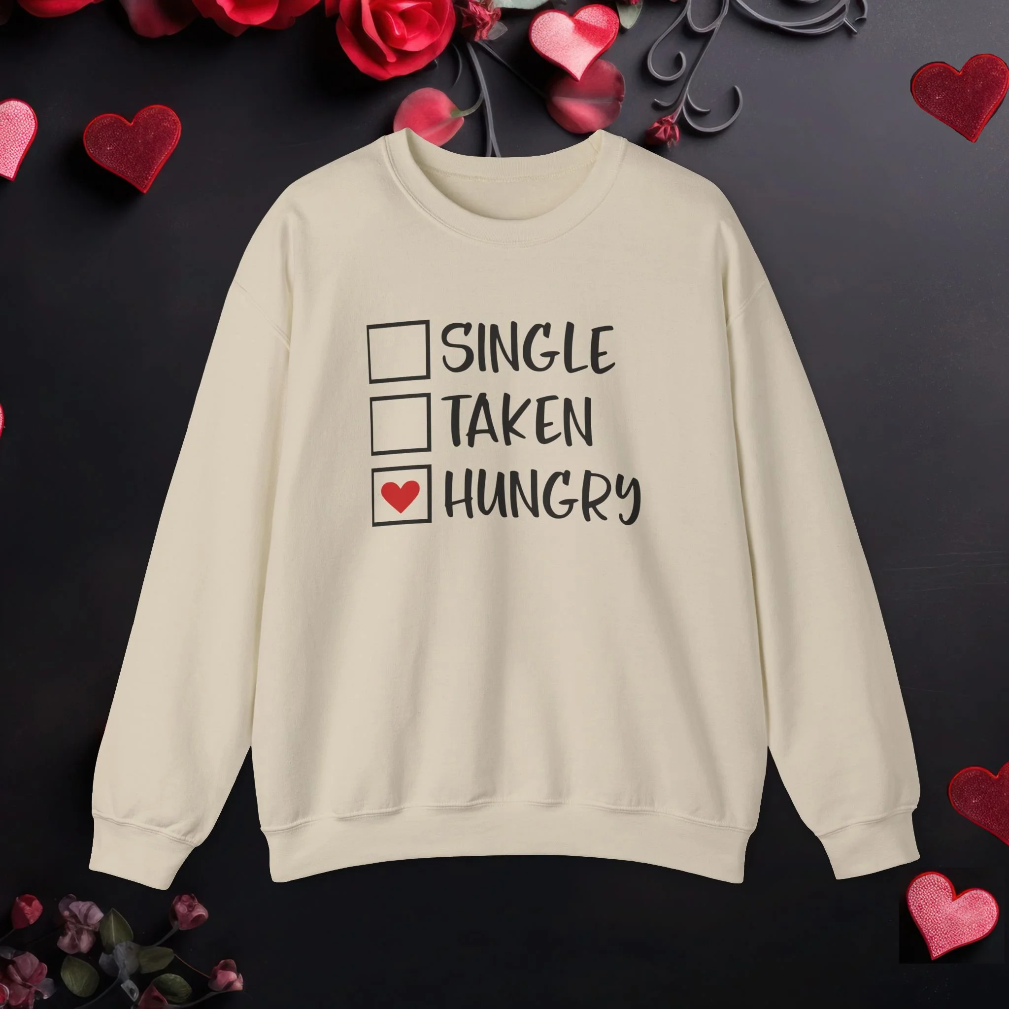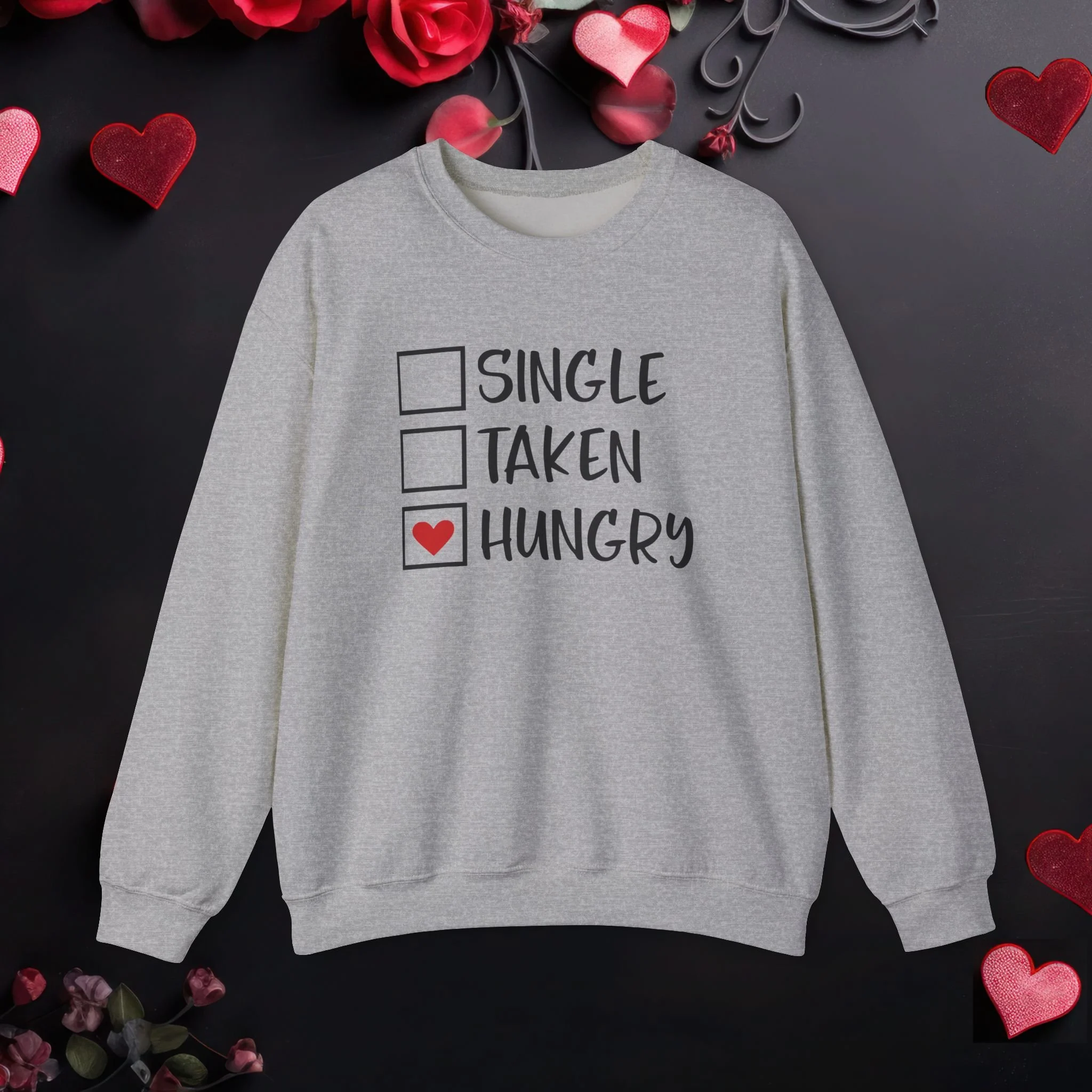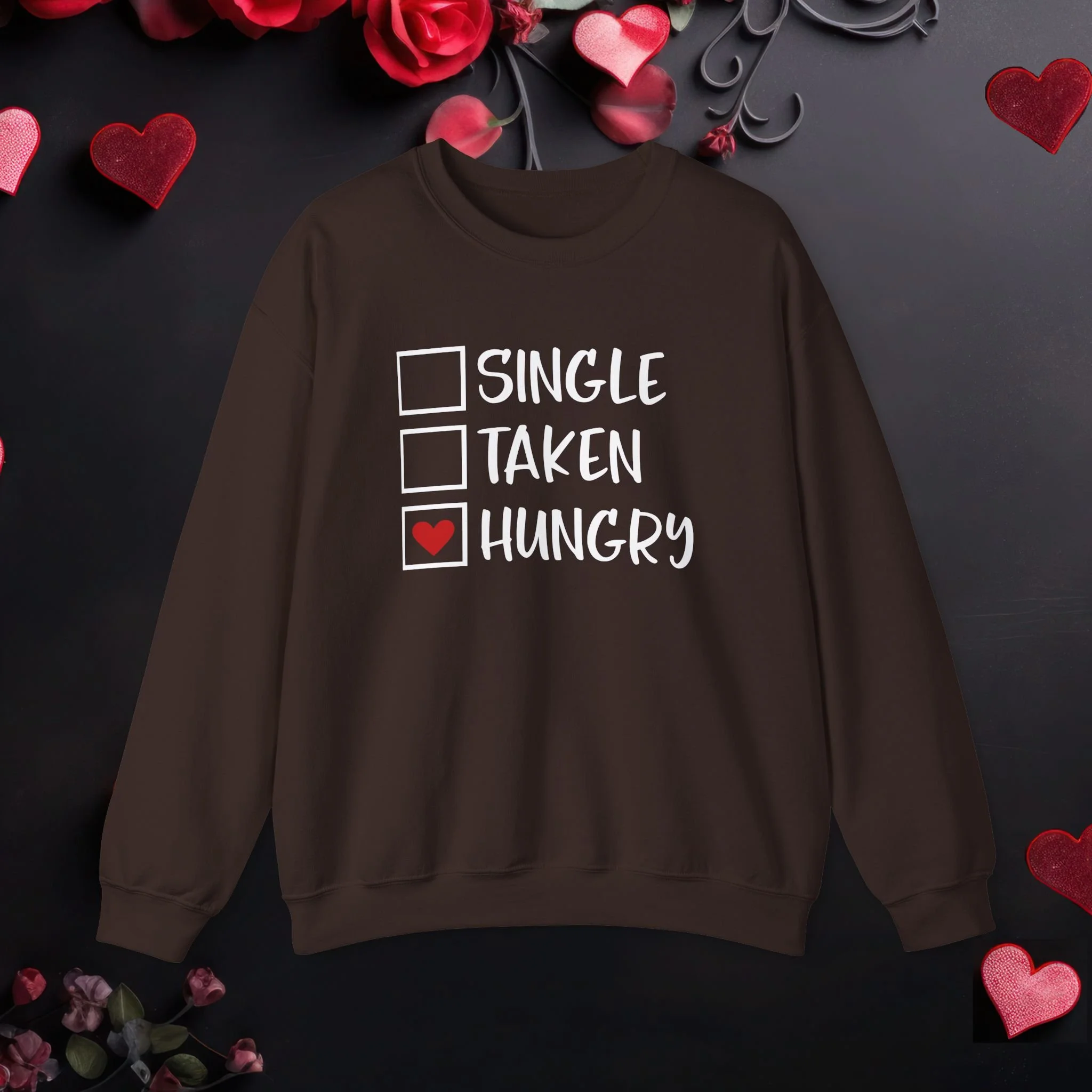 Single Taken Hungry Valentine Sweatshirt – Funny Heart Checklist Sweatshirt