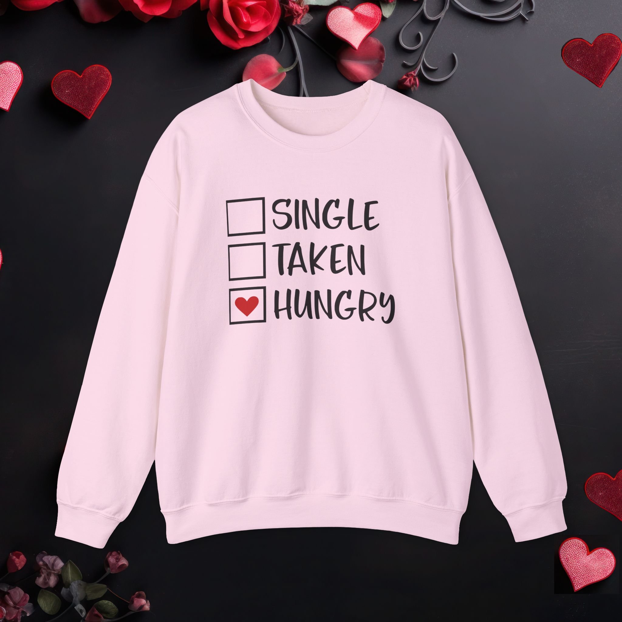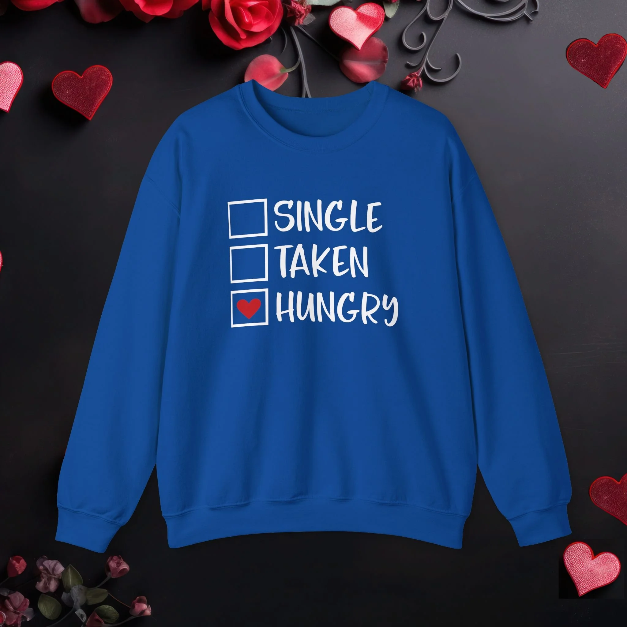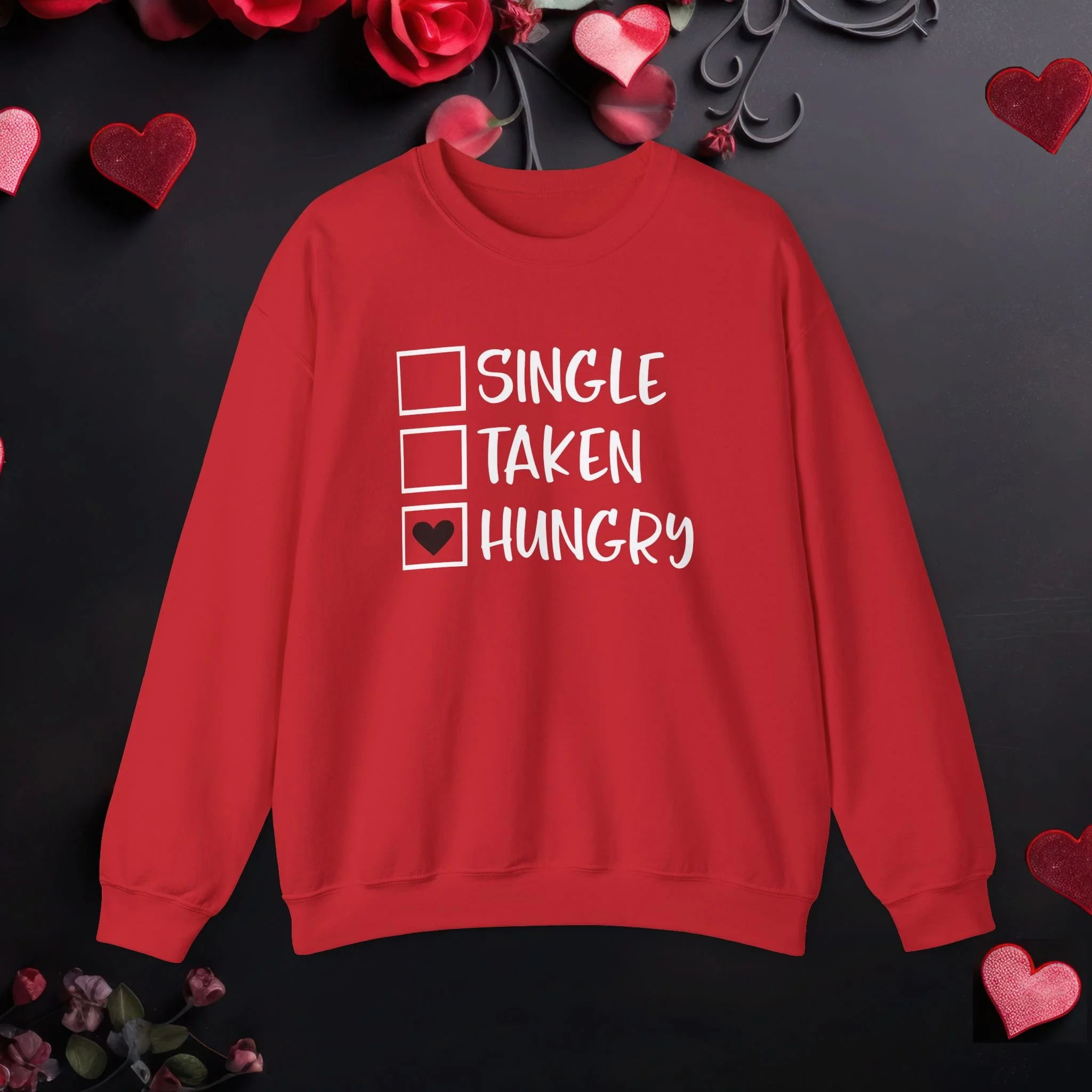 Single Taken Hungry Valentine Sweatshirt – Funny Heart Checklist Sweatshirt