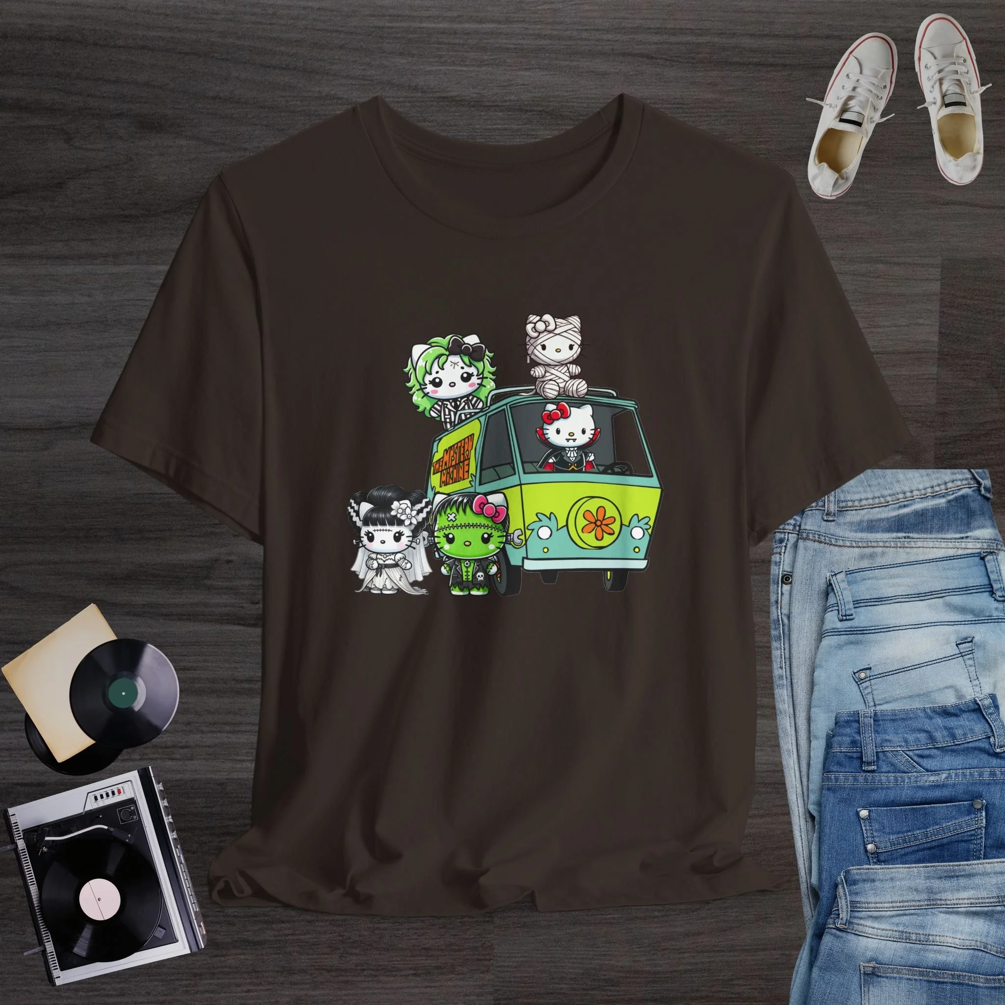Spooky Cute Kitty Van T-Shirt | Kitty Halloween Monster Friends Graphic Tee
