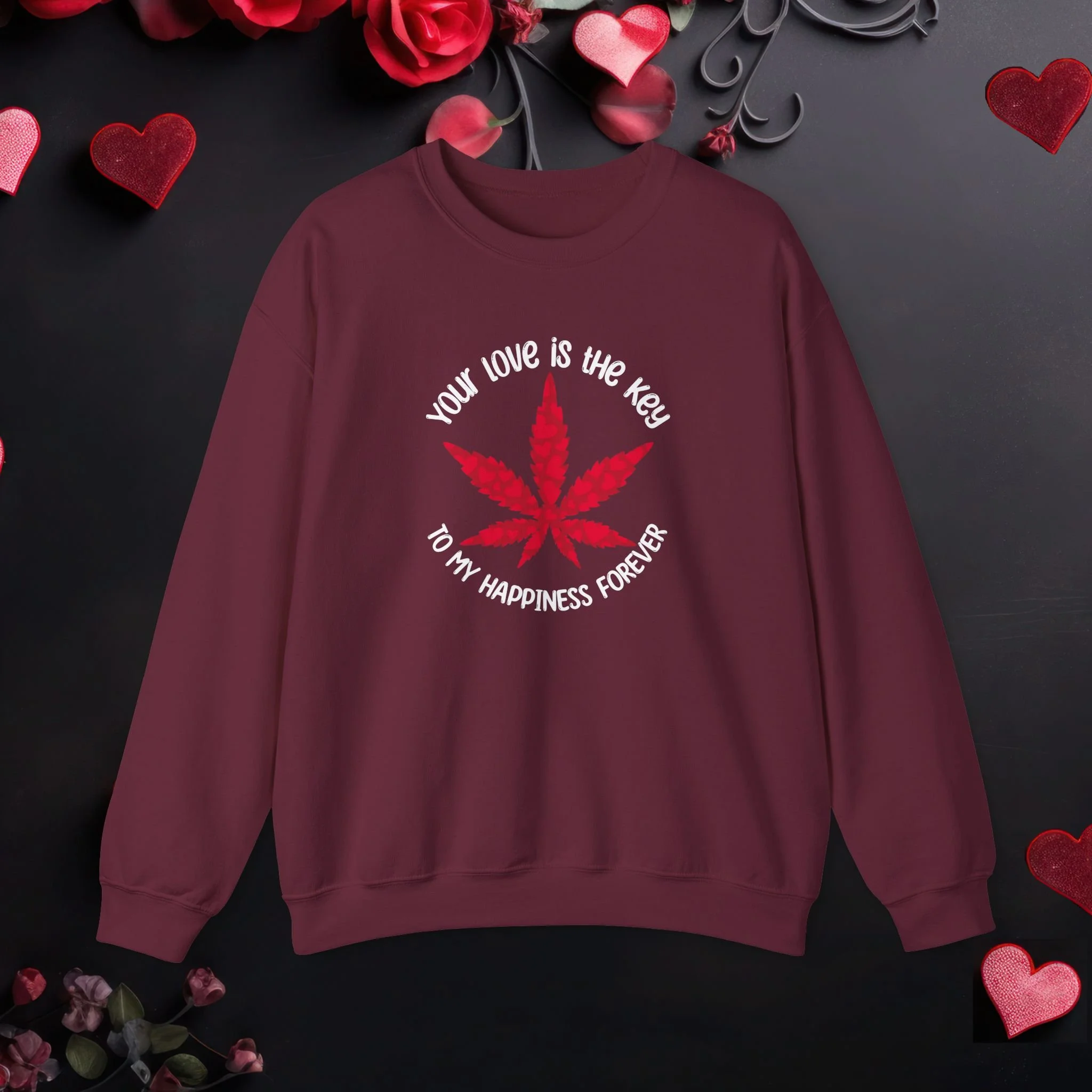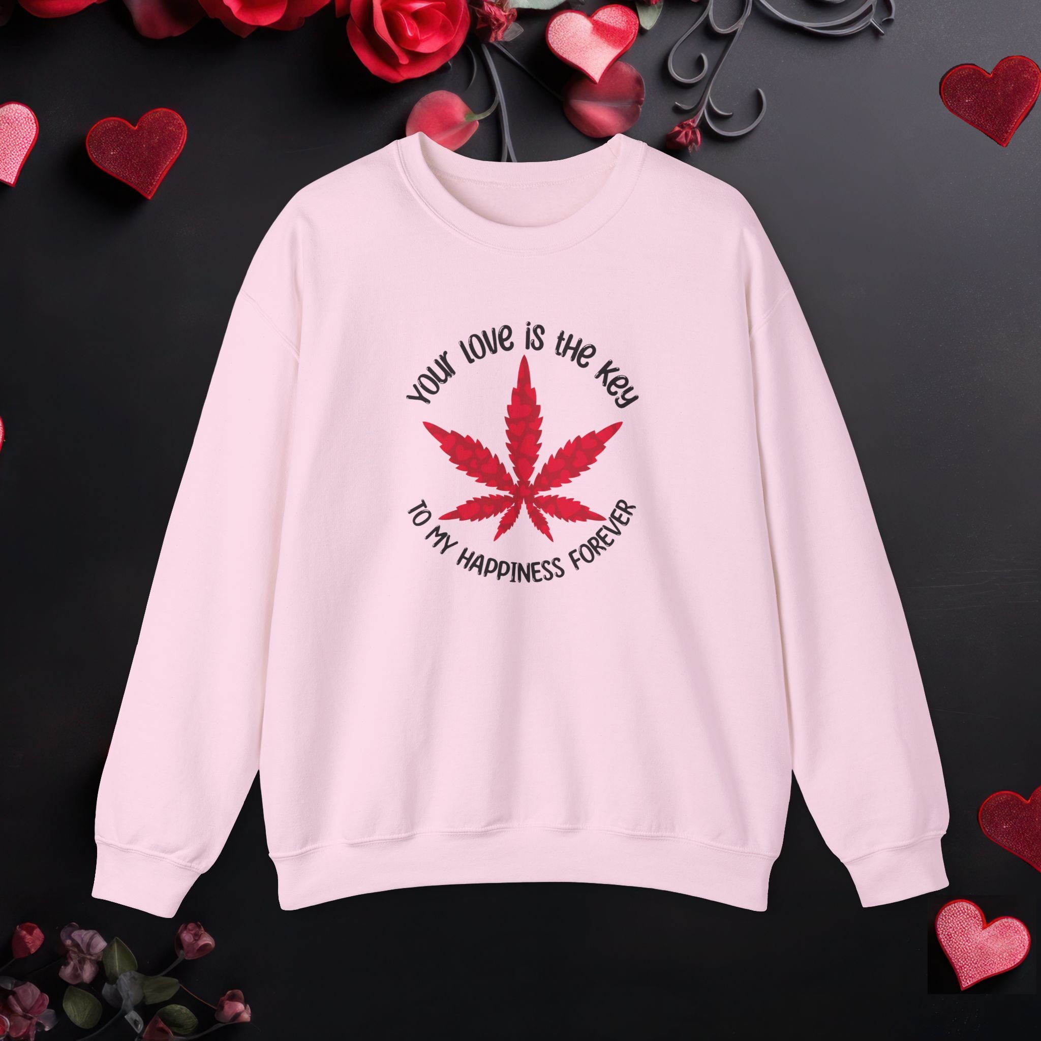 Your Love Is the Key Sweatshirt – Funny Cannabis Leaf Valentine Graphic Sweatshirt