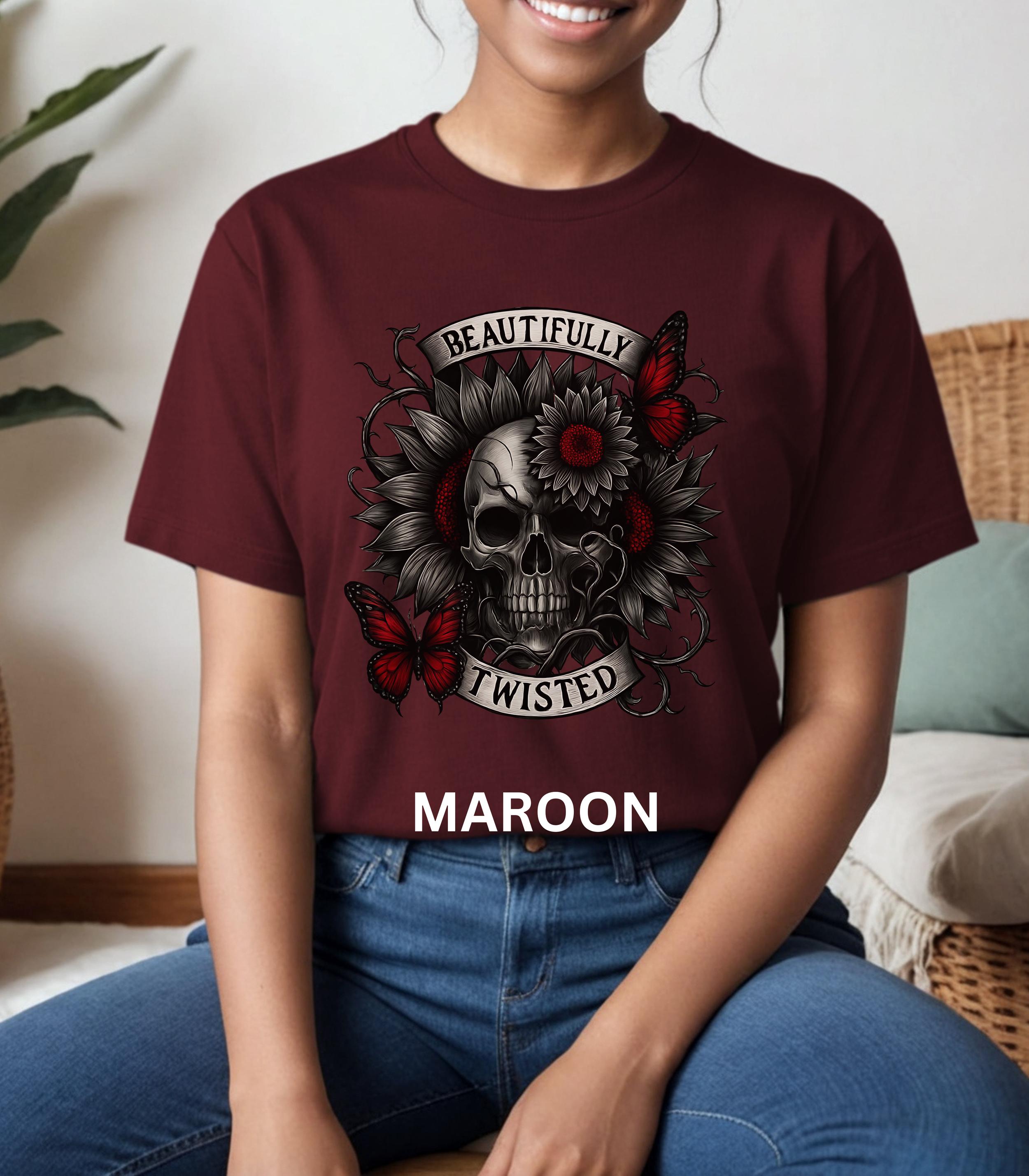 Categories: All T-shirts Christmas Theme Park Coffee Food Alcohol/420 Pride Sarcastic/Inspirational Sweatshirts All / T-shirts / Beautifully Twisted Skull Shirt – Gothic Sunflower Tee, Dark Aesthetic Butterfly Design from $25.00 View Options Cute But Deadly Gothic Graphic Shirt, Skull & Rose Graphic Tee from $32.00 View Options